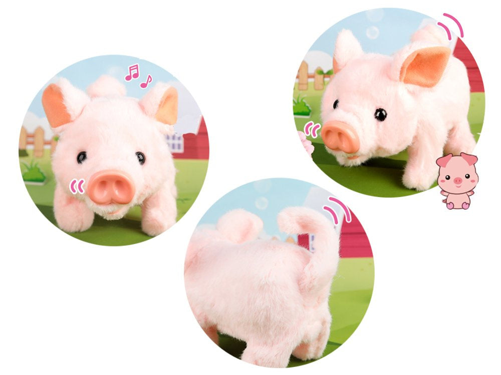 Interaktyvioji kiaulė bus pliušinis draugas. Žavinga pliušinė interaktyvioji kiaulė mielai susidraugaus su jūsų vaiku! Žaislas pagamintas iš malonaus pliušo ir sukelia norą jį glostyti. Įjungus žaislą kiaulytė eina į priekį, juokingai kraipo snukutį, vizgina uodegą ir, žinoma, kriuksi. Tai labai mielas žaislas, kuris tikrai patiks visiems.