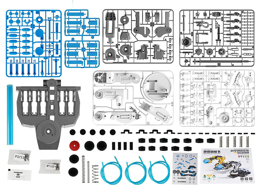 Sukurkite šarnyrinę roboto ranką surinkdami visas rinkinio dalis. Tada įpilkite vandens į hidraulinę sistemą ir valdykite „roboto rankos“ judesius visomis kryptimis naudodami 6 svirtis! Ranka gali pakelti maždaug iki 50 g sveriančius objektus naudodama griebtuvą arba siurbtuką. Tapkite mažuoju inžinieriumi! Išlaisvinkite savo vaizduotę ir pajuskite hidraulinės mechaninės rankos džiaugsmą!