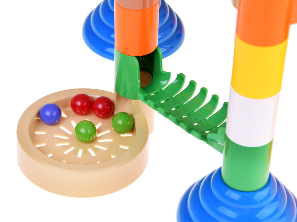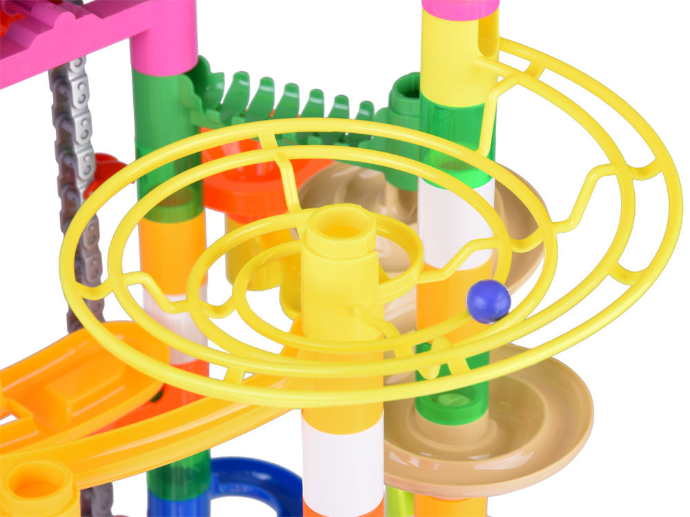 MEGA kamuoliukų trasa - tai įdomus konstruojamas žaislas, prikaustantis vaikų dėmesį dinamišku žaidimu ir kūrybinėmis galimybėmis. Jį sudaro 236 spalvingos detalės, kurios suteikia begalę pramogų ir skatina vaikų kūrybiškumą bei inžinerinius įgūdžius. Įmeskite kamuoliukus ir stebėkite jų kelią!