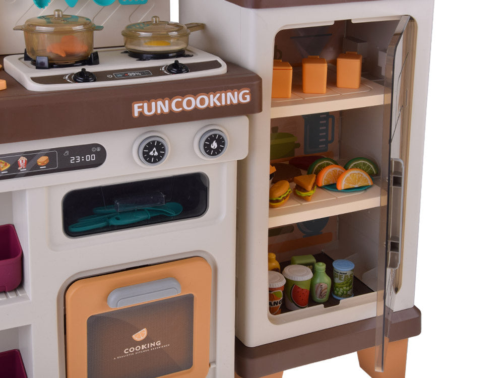 Ši didelė plastikinė virtuvė ryškiomis, linksmomis spalvomis yra puikus priedas bet kurio vaiko miegamajam ar žaidimų zonai. Realistiški šviesos ir garso efektai kartu su interaktyviomis funkcijomis leidžia vaikams jaustis tarsi jie būtų tikroje virtuvėje, tuo pačiu ugdydami kūrybiškumą ir kulinarinius įgūdžius.