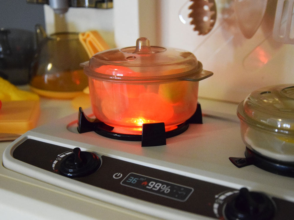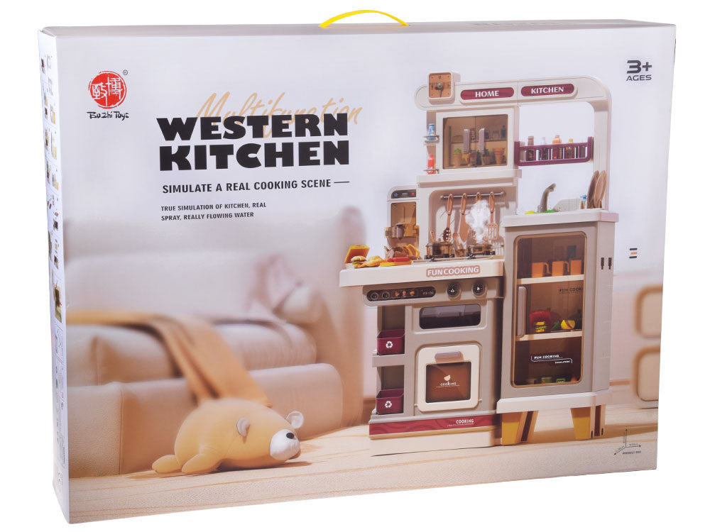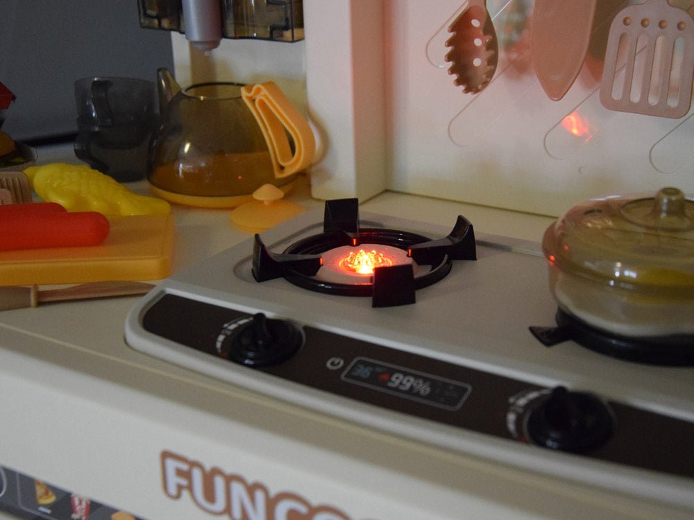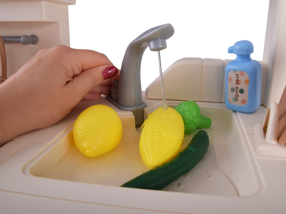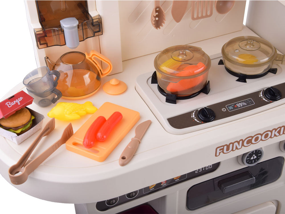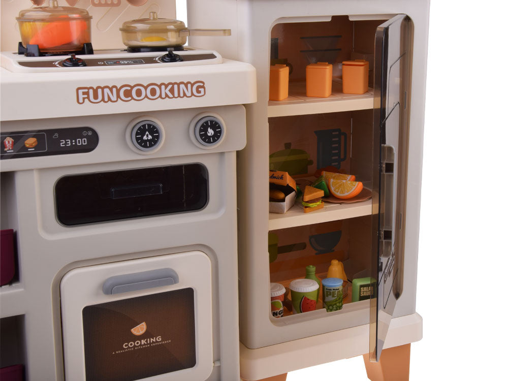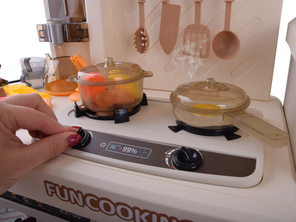Interaktyvi virtuvė vaikams su garso ir šviesos efektais, smėlio spalvos