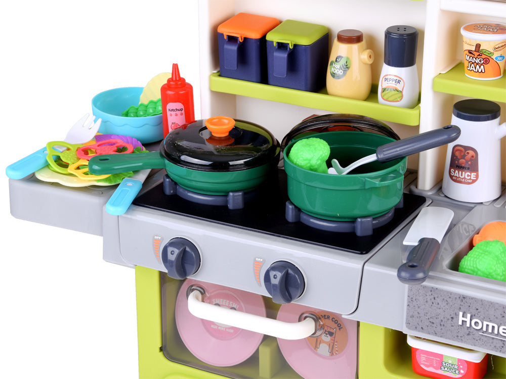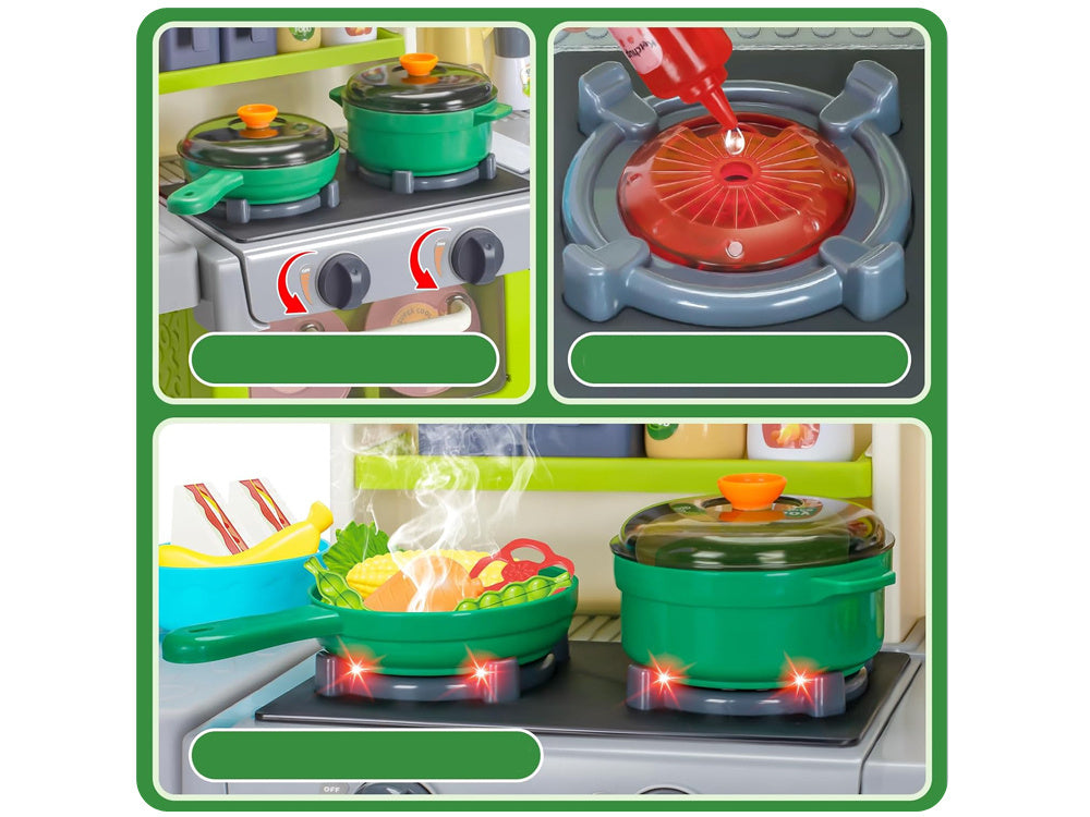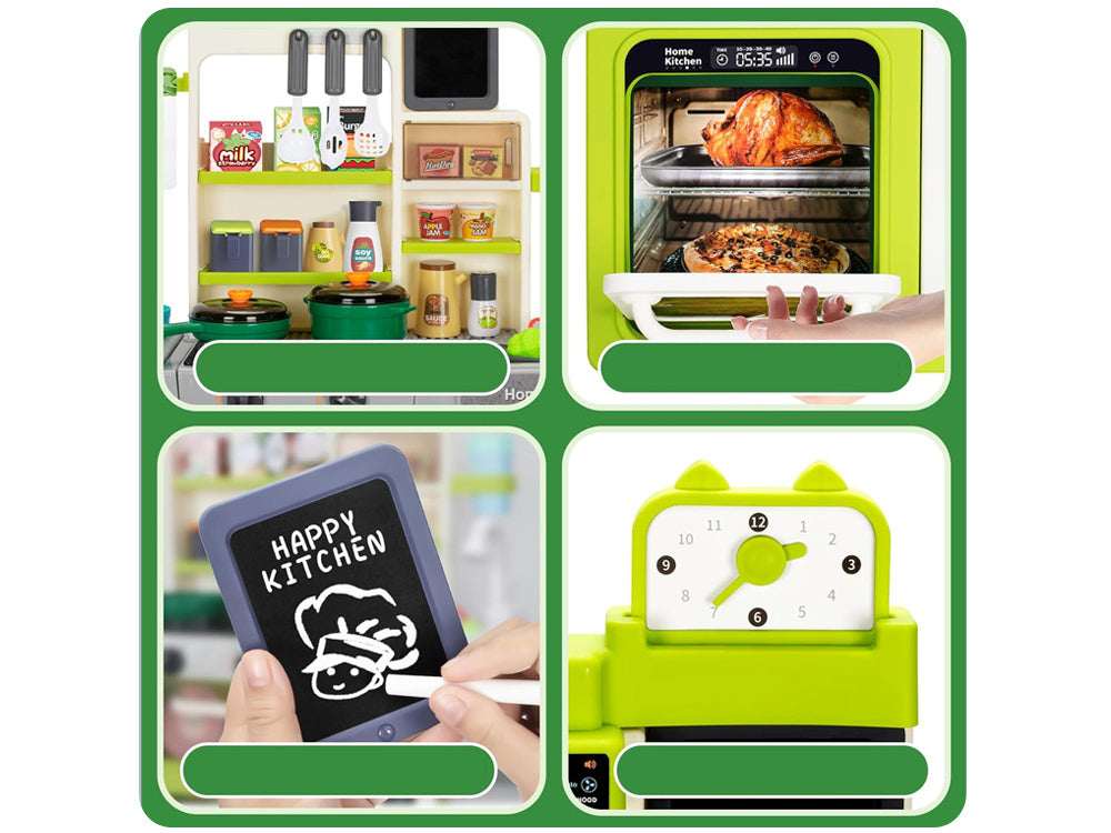 Interaktyvi žaislinė virtuvėlė vaikams su daugybe priedų, žalia