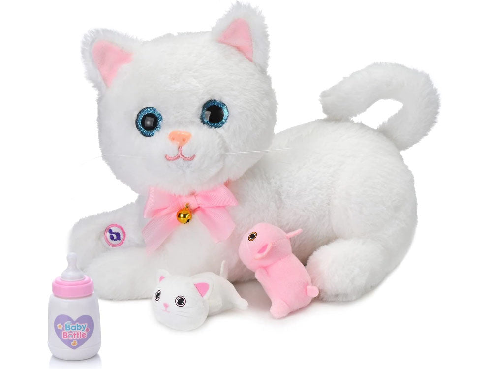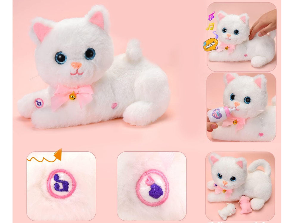 Interaktyvus katės ir kačiukų rinkinys su garso efektais, baltas