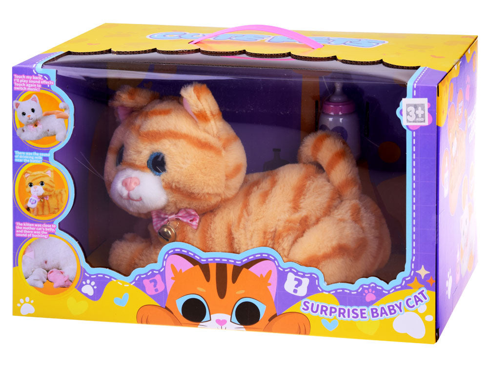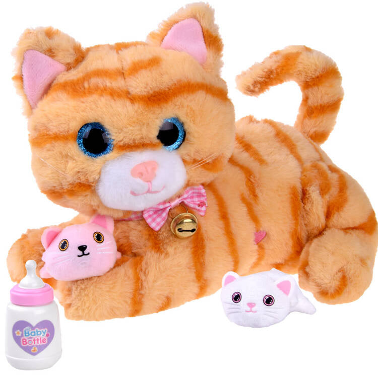 Interaktyvus katės ir kačiukų rinkinys su garso efektais, oranžinis