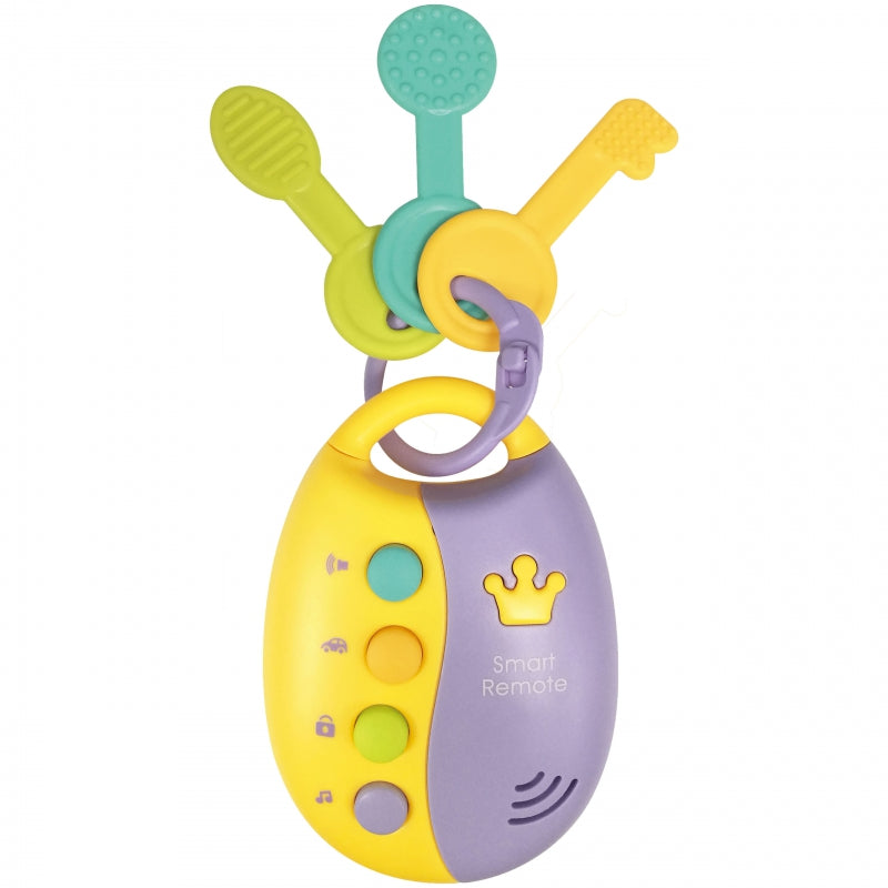Interaktyvūs kramtukas ir rakteliai iš WOOPIE - tai daugiafunkcinis ir modernus žaislas, kuris tikrai patrauks bet kurio mažylio dėmesį. Žaislas turi keturis spalvotus raktus, kuriuos paspaudus prasideda įvairūs garso ir šviesos efektai. Šie efektai, imituojantys automobilio atidarymo ir uždarymo garsą, garsinį signalą, variklio užvedimą ar durų skambutį, sukurti taip, kad vaikui būtų tikroviškas ir įdomus žaidimas. Skirtingų formų rakteliai taip pat puikiai tinka kaip kramtukai, kad veiksmingai malšintų dantukų skausmą ir lavintų jutimus. Be to, kūdikis gali mėgautis 10 skirtingų dainelių, kurios padės jam lavinti ritminius ir muzikinius įgūdžius.