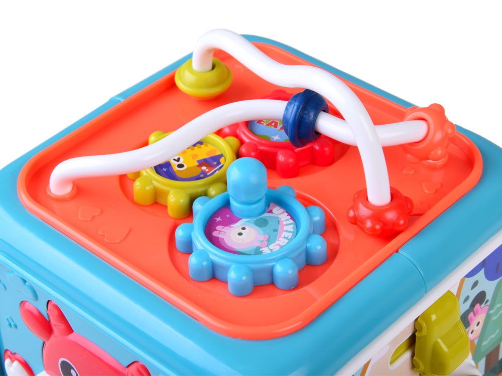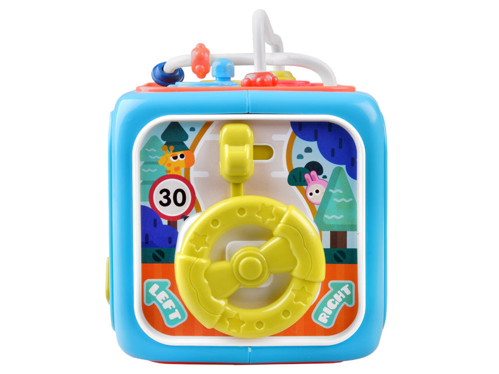 Mokomasis, interaktyvus kubas sukurtas taip, kad sudomintų ir ugdytų vaiko įgūdžius įvairiuose vystymosi etapuose. Dėka skirtingų žaislų ant kiekvienos sienos, jums nebereikės daugybės įvairiausių žaislų. Žaisdamas vaikas lavina akies-rankų koordinaciją, gebėjimą lyginti bei gebėjimą skirti formas ir spalvas.