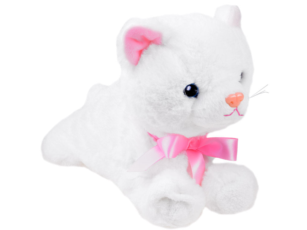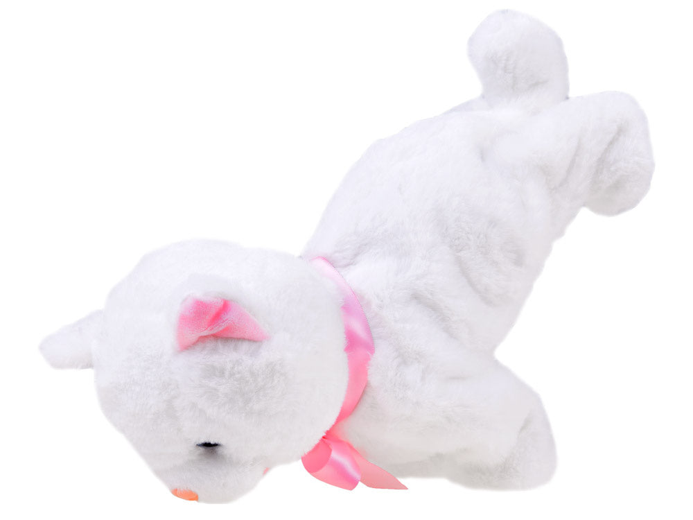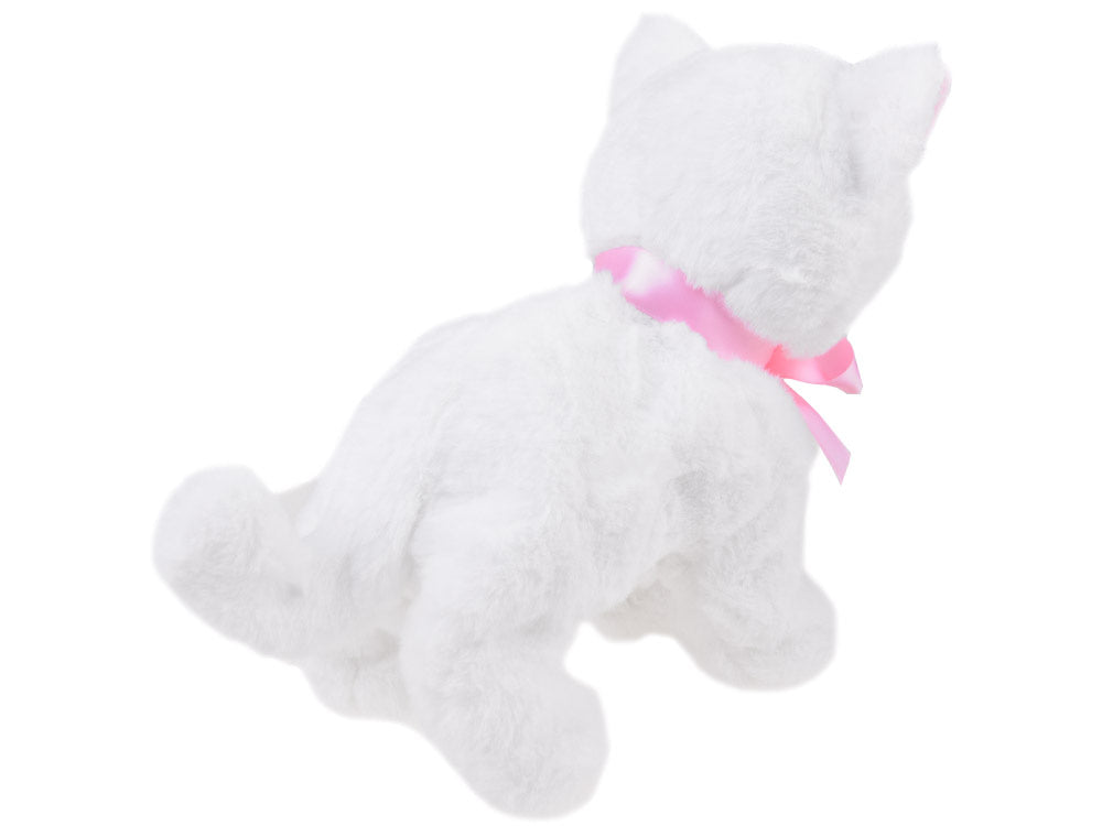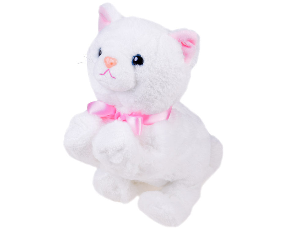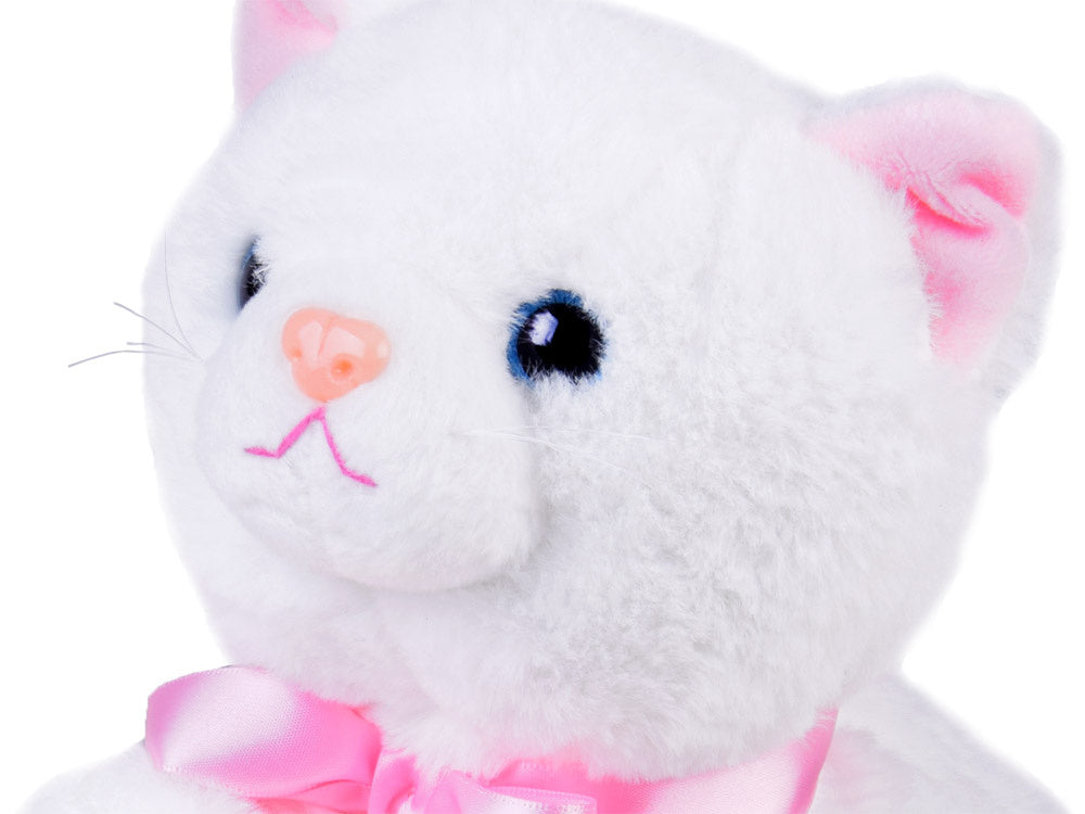 Mielas interaktyvus kačiukas su rožiniu kaspinu gali tapti kiekvieno vaiko draugu. Juk kiekvienas mažylis svajoja apie keturkojį draugą su kuriuo galėtų žaisti. Tačiau sunku išpildyti visus mūsų vaikų norus, ypač jei jie svajoja apie tikrą keturkojį, o mes neturime galimybės turėti tokį augintinį. Todėl, norėdami iš dalies išpildyti jų norus, siūlome jums šią žavią pliušinę katę. Kačiukas apsiūtas pliušiniu, minkštu kailiuku, turi mielą rausvą plastikinę nosytę ir linksmas plastikines mėlynas akis.