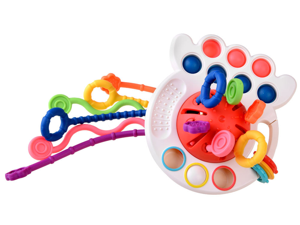 Interaktyvus daugiafunkcinis sensorinis žaislas 4in1 skirtas vaikams nuo 18 mėn. Žaislas leis vaikui atrasti kitokį tekstūros ir formos pasaulį, jame yra daug funkcijų, kurios teigiamai paveiks vaiko motorinius įgūdžius ir sužadins vaiko smalsumą. Abi žaislo pusės turi neslidžią konstrukciją, kuri leis vaikams patogiai jį laikyti.
