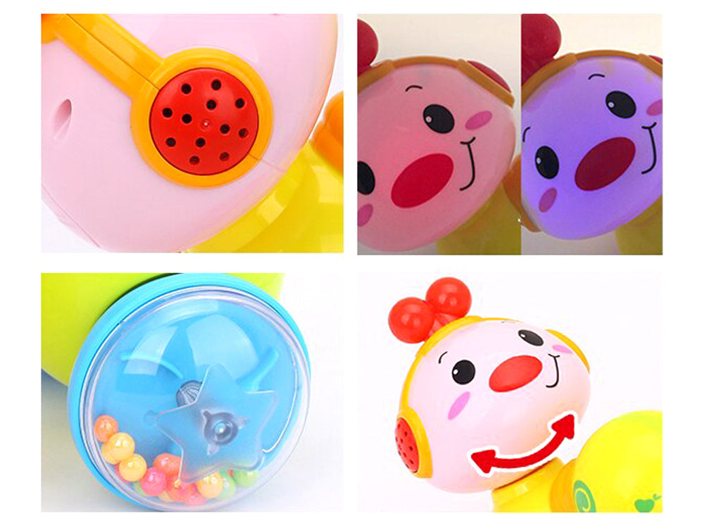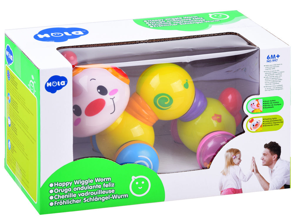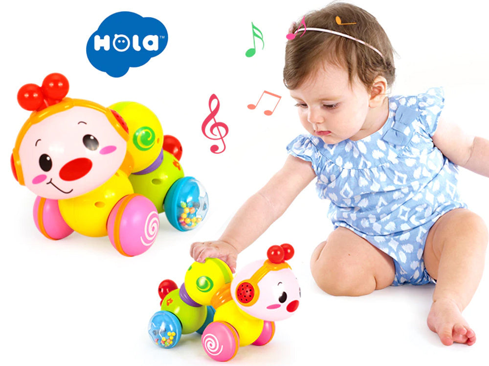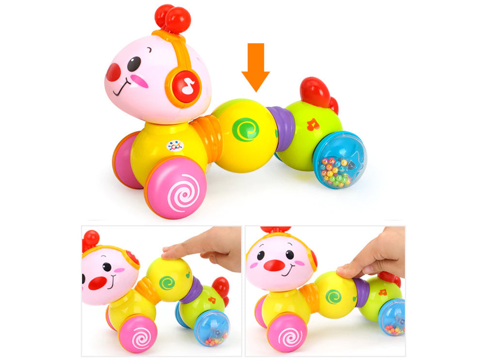Susipažinkite su puikiu žaidimų draugu ropojančiam vaikui! Interaktyvus mielas mobilus vikšras važiuoja ant ratukų. Jaudinantis veiksmas ir smagūs garsai skatina vaiką sekti žaislą ir vis drąsiau ropoti. Paspaudus žaislo nugarėlę, žaislas pradeda judėti ir juda ant lygaus paviršiaus. Garsas sužadinamas paspaudus ausinę su natomis. Skambant muzikai žaislo galva šviečia keisdama spalvas. Vikšro galva yra judanti ir ją galima pasukti pagal laikrodžio rodyklę.