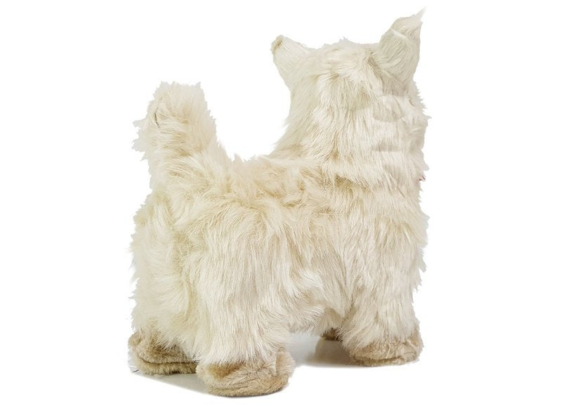 Šuo turi kreminės spalvos kailį, tamsiai rudas akis, trumpiau tariant, tikra realaus čihuahua kopija! O kad būtų dar tikroviškiau, jis reaguoja į kiekvieną prisilietimą uodegos vizginimu ar švelniu lojimu, o palietus šoną - ima judinti letenėles ir eiti į priekį. Šis žaislinis šuniukas mokys vaiką atsakomybės ir bus puiki praktika prieš įsigijant augintinį.