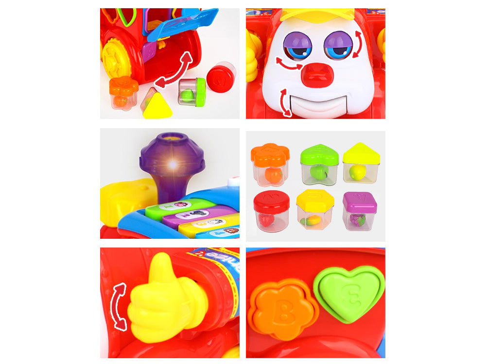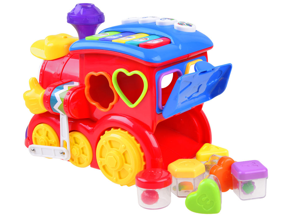 Spalvingas traukinys pagamintas labai tvirtai ir efektyviai, labai ryškiomis, gražiomis spalvomis. Muzikinis žaislas (angliškai) gali važiuoti įjungtas, groja ausiai malonias melodijas ir dainas. Daugiafunkcis žaislas lavina rankinius ir pažintinius įgūdžius.