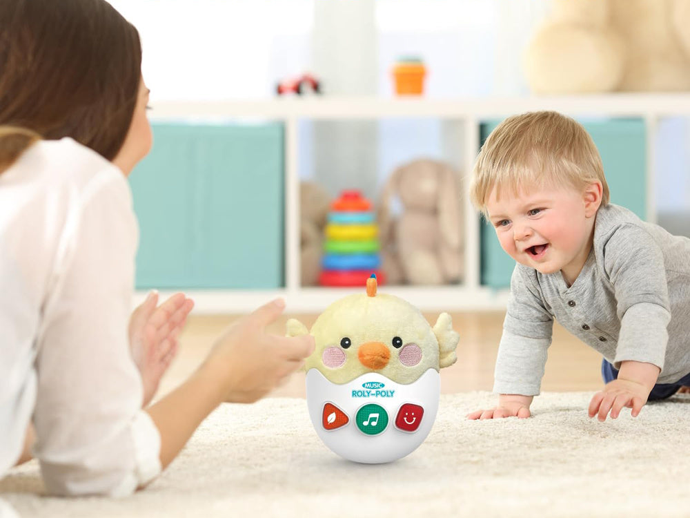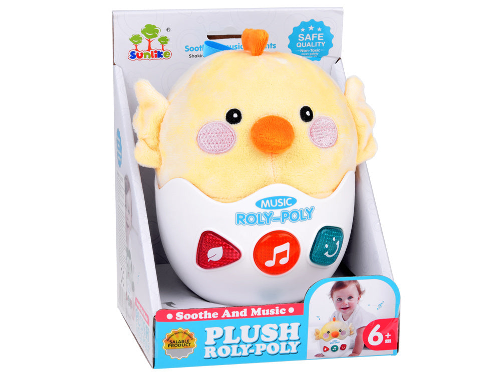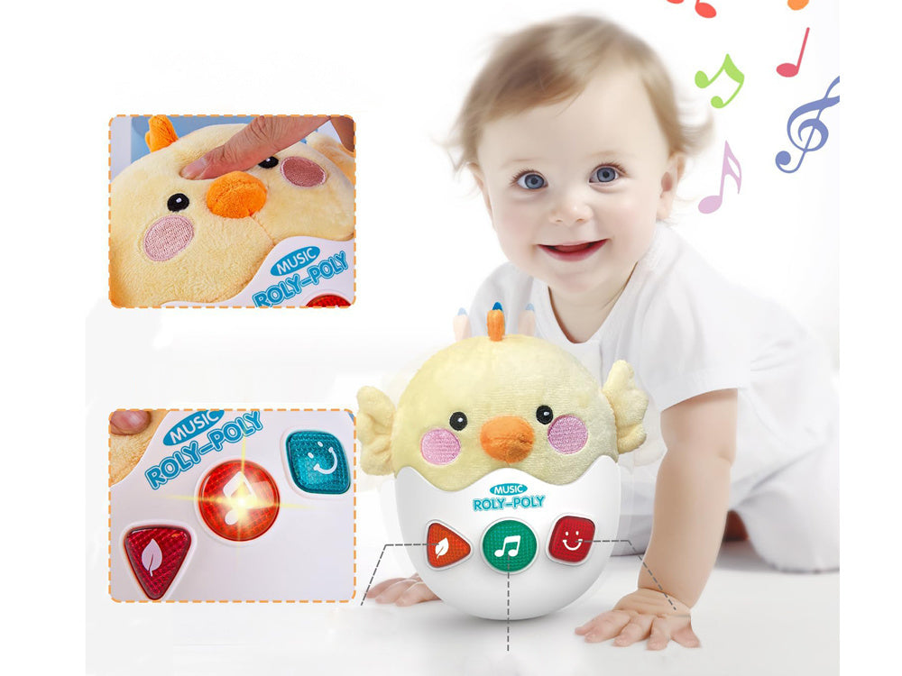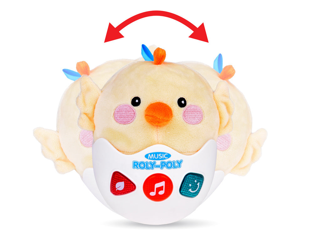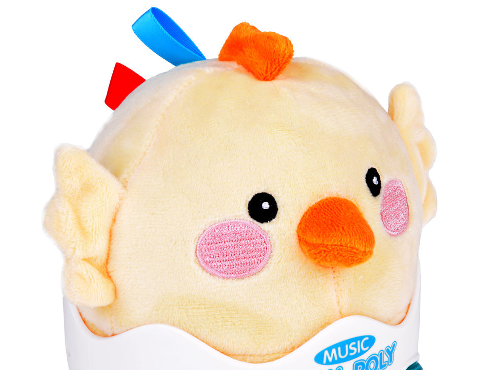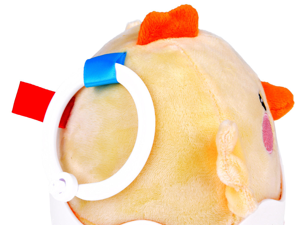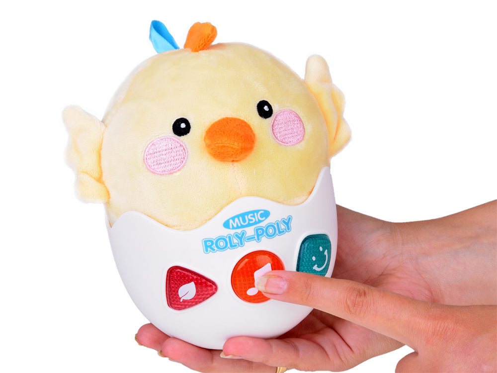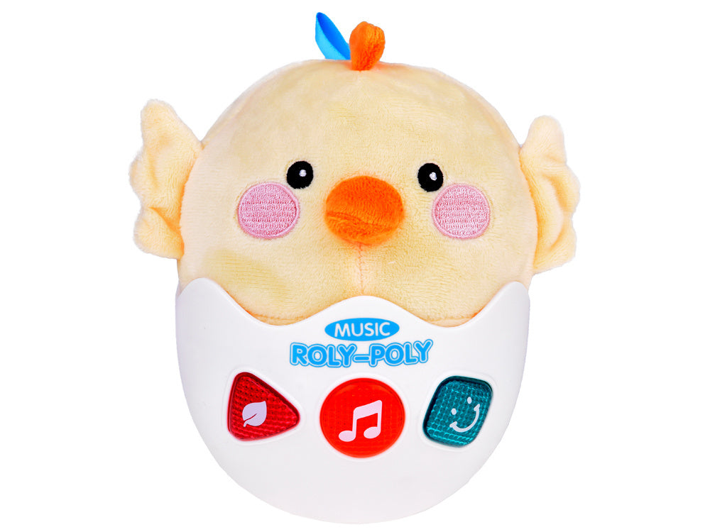 Interaktusis „Viščiukas“ yra žaisminga, linksma muzikinė dėžutė, kuri pradžiugins kiekvieną mažąjį naudotoją ir jo tėvus! Pusė jo pagaminta iš minkštos, liesti malonios medžiagos, o kita pusė - plastikinis kiautas su spalvotais mygtukais. Dėl savo aptakios formos paukštelis gali suktis visomis kryptimis. Tereikia jį šiek tiek pastumti.