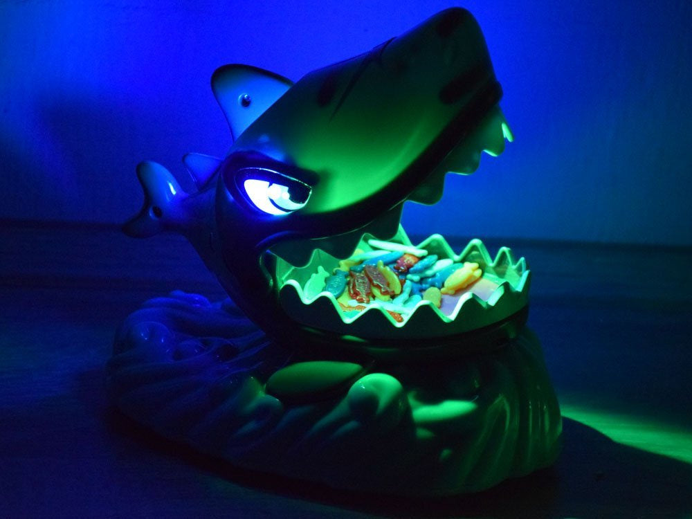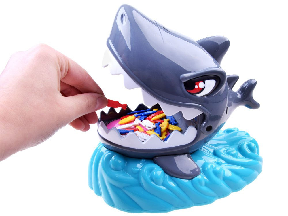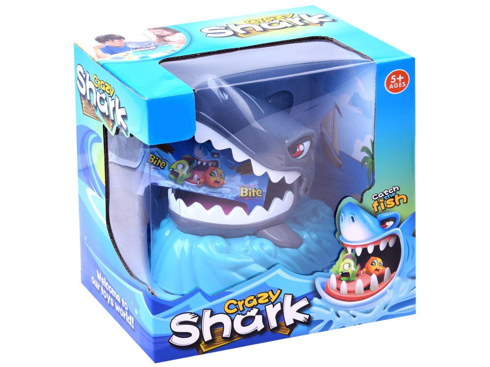 Įspūdingas žaidimas visai šeimai. Žaidimas, kuris pareikalaus iš žaidėjo plieninių nervų, greičio ir gudrumo. „Pašėlęs ryklys“interaktyvus žaidimas, pagamintas tik iš plastiko, labai estetiškas ir įspūdingas. Žaidimo metu traukiama kortelė, kurioje nurodytas žuvų, kurias reikia ištraukti iš ryklio burnos, skaičius. Iš pažiūros banalu, bet žaidimo metu ryklys groja jaudinančią muziką, kad padidintų įtampą. Ryklio akys ir burna šviečia, o tai dar labiau sustiprina siaubo efektą! Įdomus žaidimas jauniems ir vyresnėms, bet taip pat galite treniruoti savo refleksus individualiai. Po kiekvieno laimikio ryklys iš naujo nustatomas į atvirą padėtį. Žaidimas kupinas įspūdžių ir suteikia 100 % juoko.