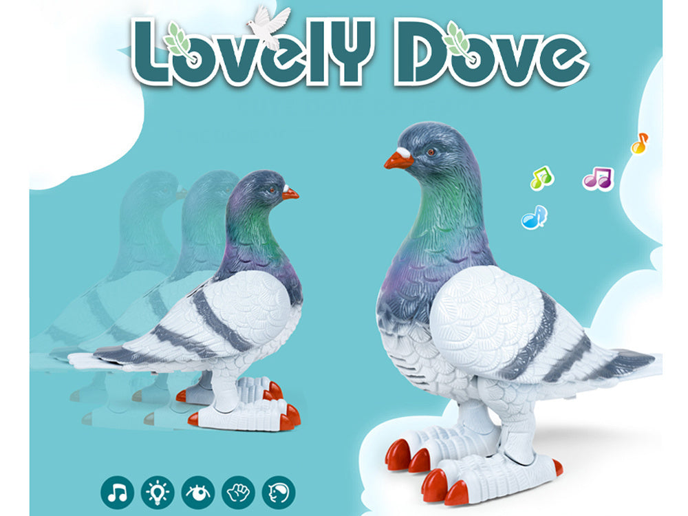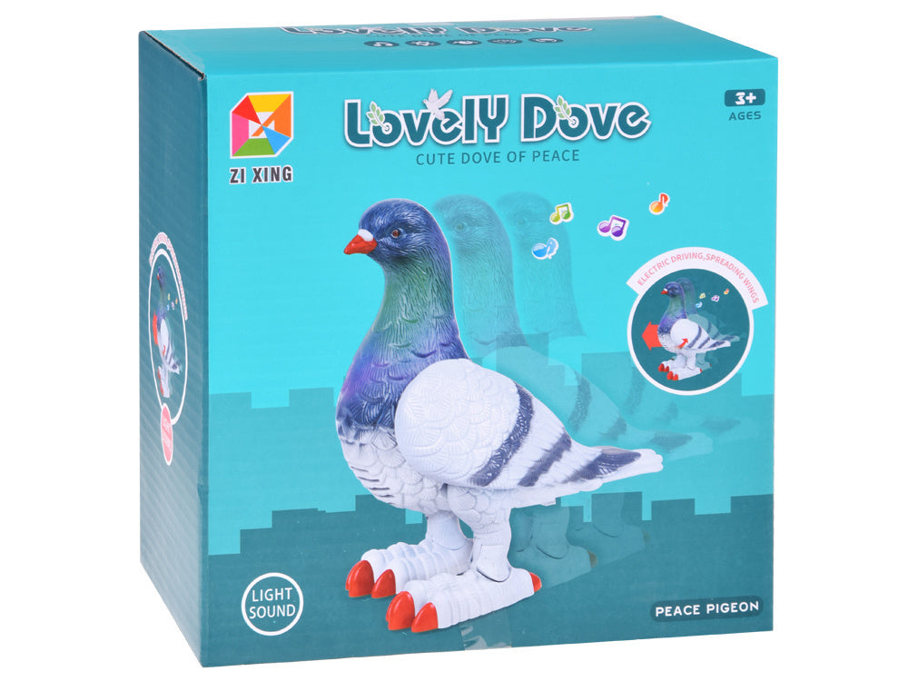 Interaktyvusis balandis, veikiantis baterijomis, yra tikras išradimas! Balandis pagamintas labai tikroviškai, balandžių plunksnų spalva, forma, dydis, viskas atitinka. Žaislas lėtai juda priešais save, judindamas sparnus ir mirksėdamas akimis, lydimas linksmos melodijos. Toks balandis gali tapti puikia dovana ornitologui, mažam skraidančių paukščių gerbėjui. Žaislas supakuotas į kartoninę dėžutę