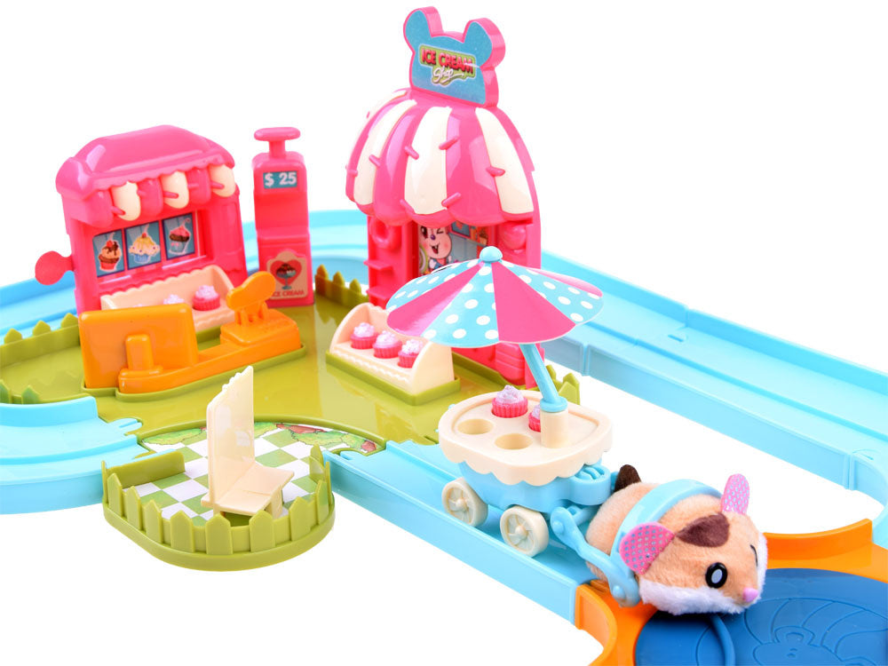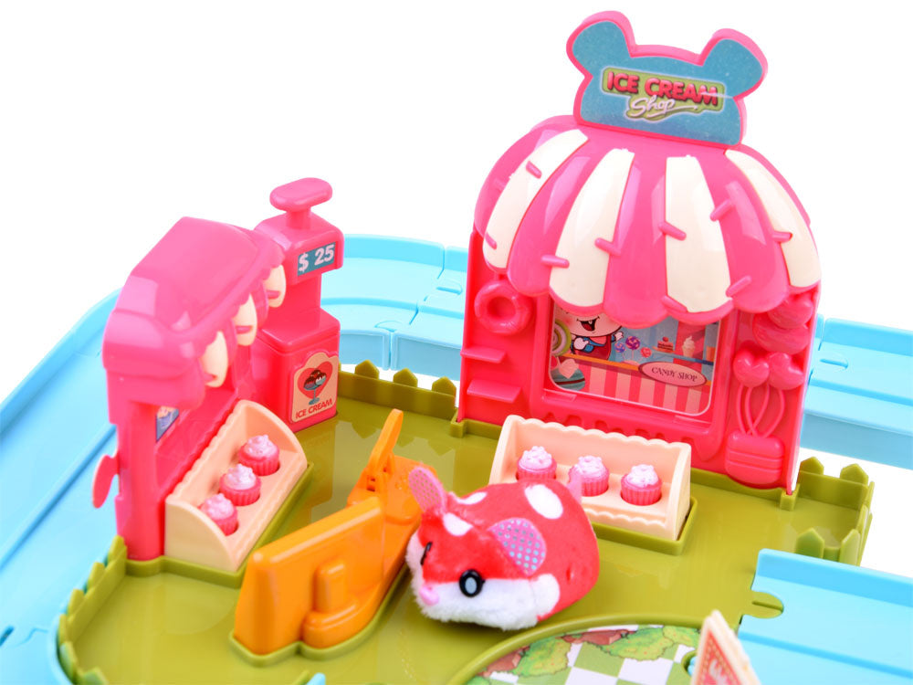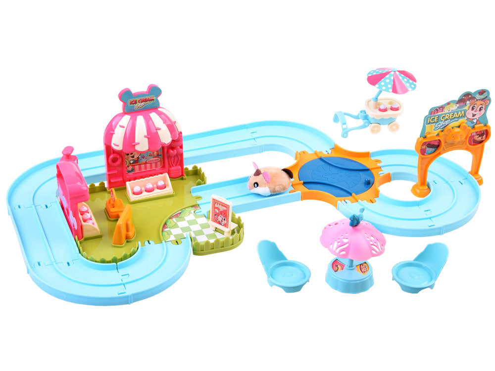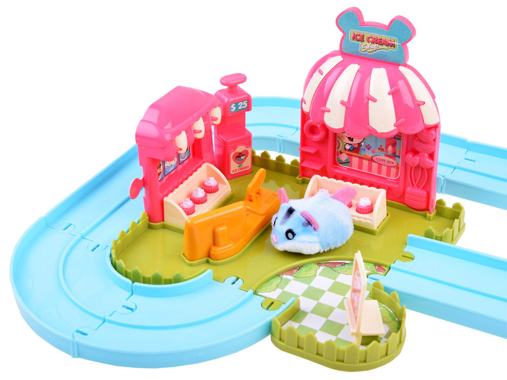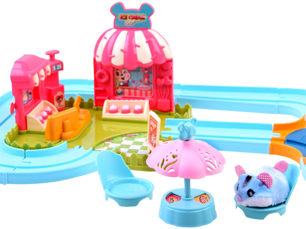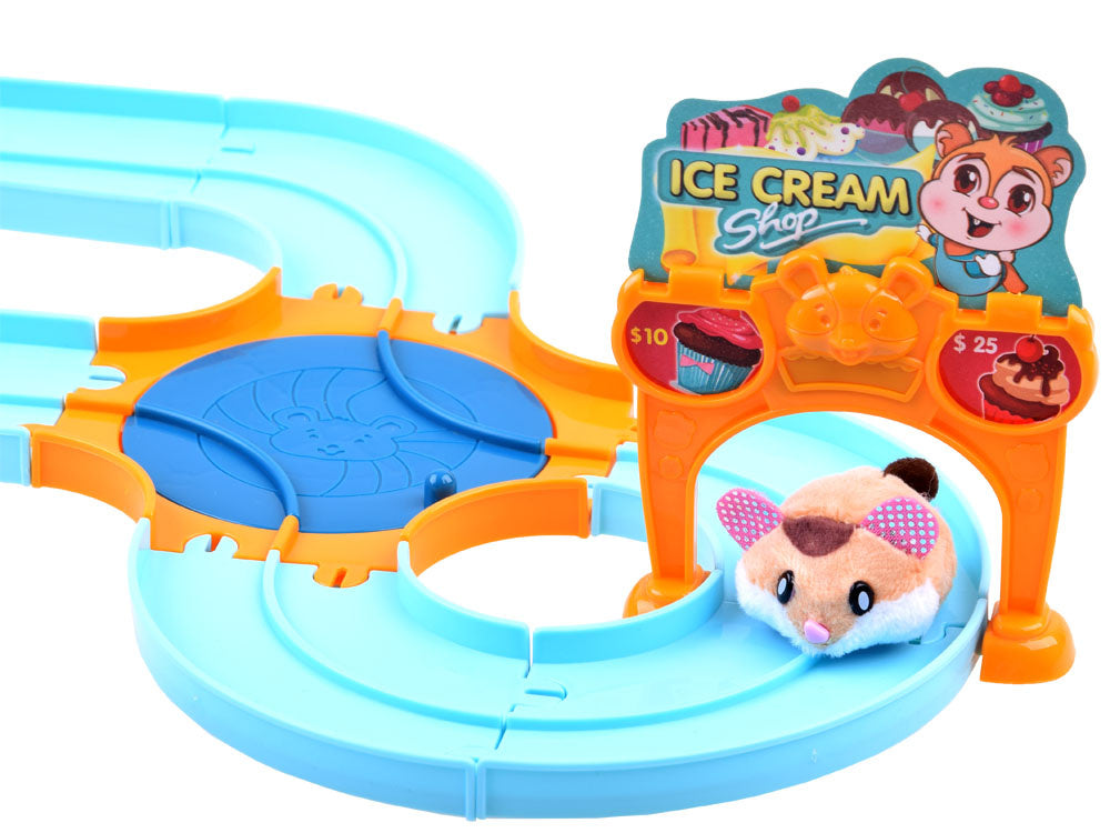 Spalvinga interaktyvi žiurkėnų trasa - puikus žaislas visiems gyvūnų mylėtojams. Trasoje yra daugybė atrakcionų, kurie paverčia ją tikru žaidimų centru. Rinkinys suteiks valandų valandas malonaus žaidimo. Žavus žiurkėnas turi minkštą, malonų liesti kailiuką. Jis ir yra paruoštas žaisti iš karto po išėmimo iš dėžutės.