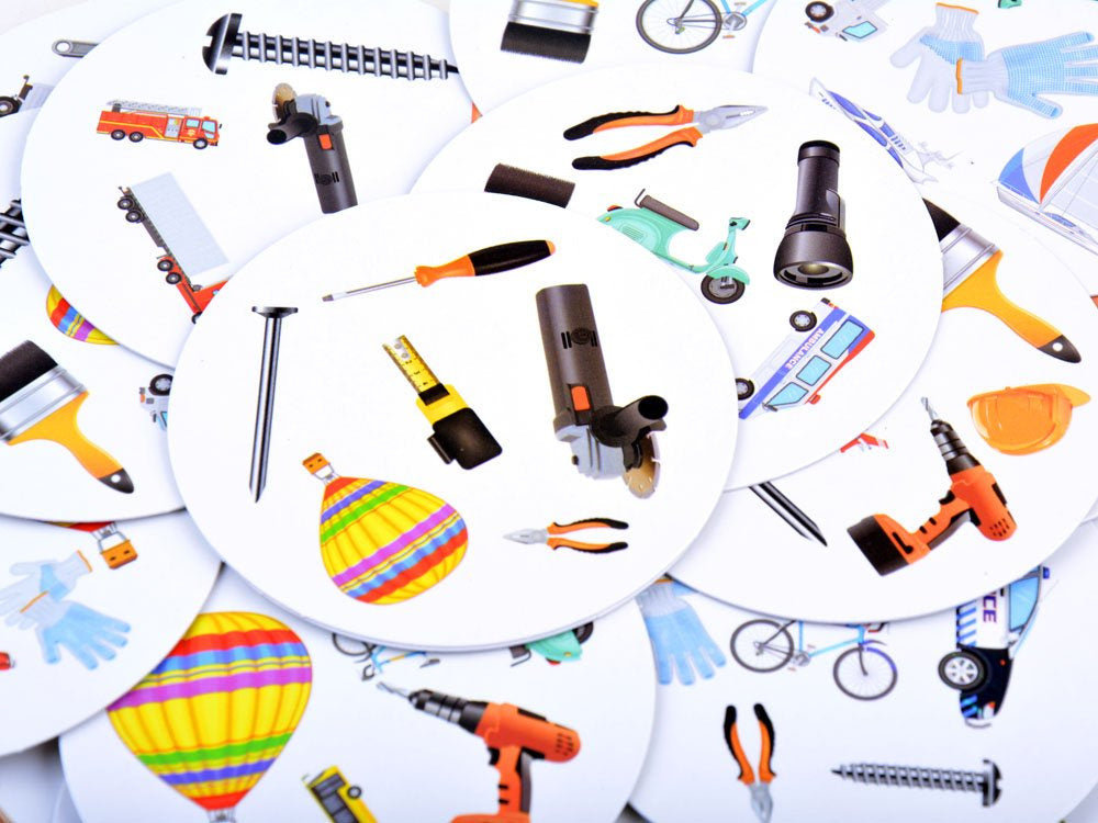 Legendinis vakarėlių žaidimas, kuriame svarbus įžvalgumas ir sumanumas. Jei turite šias savybes, būsite šimtaprocentinis nugalėtojas ir didžiausias didvyris tarp savo draugų, pažįstamų ar šeimos narių. Žaidimas bus įspūdingas atitrūkimas nuo kasdienybės. Pramoga džiugins ir mažus, ir didelius. Dėl nedidelio dydžio žaidimą galima pasiimti bet kur - į pikniką, mokyklinę ekskursiją, traukinį, atostogas ir ypač į vakarėlį. Linksmybės garantuotos! Išbandykite savo refleksus ir regėjimą, kad rasti panašumus. Nesvarbu, kurį žaidimo mini variantą žaidžiate, turite surasti tą patį daiktą ir padėti kortelę pagal šiuo metu žaidžiamo mini žaidimo taisykles. Kad žaisti būtų sunkiau, kortelėse esantys simboliai kartais yra pasukti ir skirtingo dydžio. Pačios kortos yra apvalios, jose gausu spalvingų iliustracijų, o kiekviena kortelė yra unikali ir su kitomis kortelėmis jungiasi tik vienu simboliu.