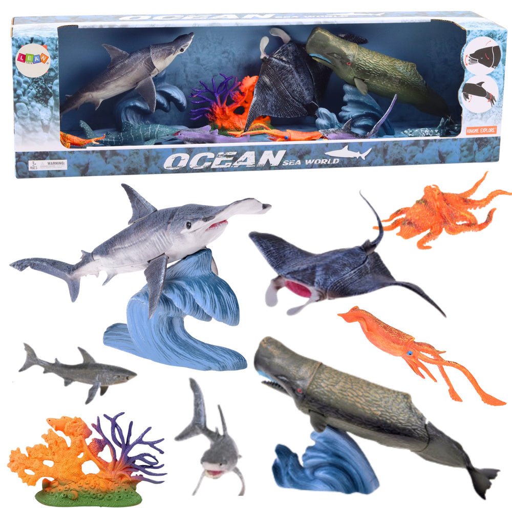 Jūrų gyvūnų figūrėlių rinkinys su judančiais elementais