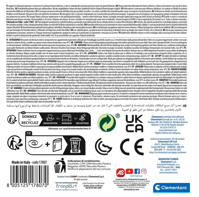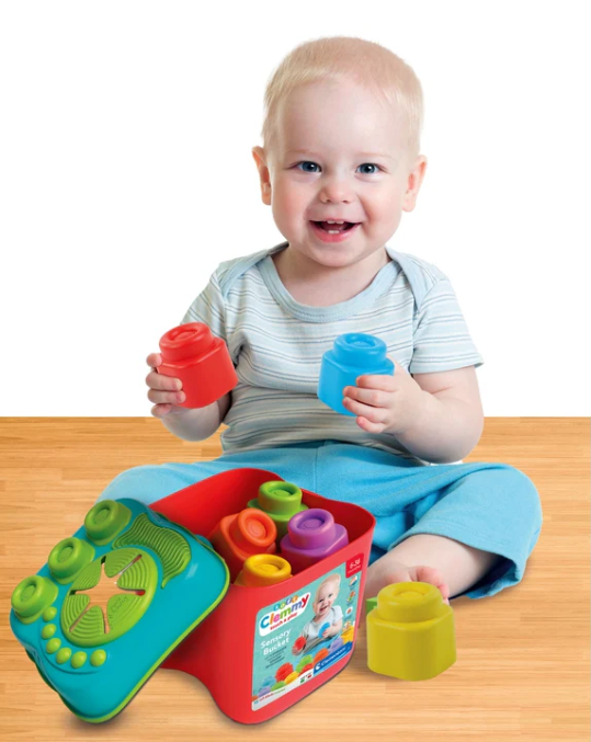 Naujas Clemmy kibiras su minkštu dangčiu, kuriame yra įvairių formų, tekstūrų ir jungčių, skatinančių žaisti su blokeliais, esančiais komplekte. Minkšti ir spalvingi blokai padeda vaikams ugdyti vikrumą, lytėjimo ir regos suvokimą. Žaislas turi dangtį, o blokai gali būti dedami ant jungčių arba įdedami į kibirą per angą.