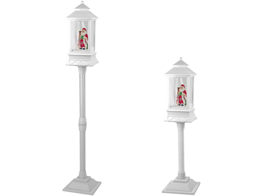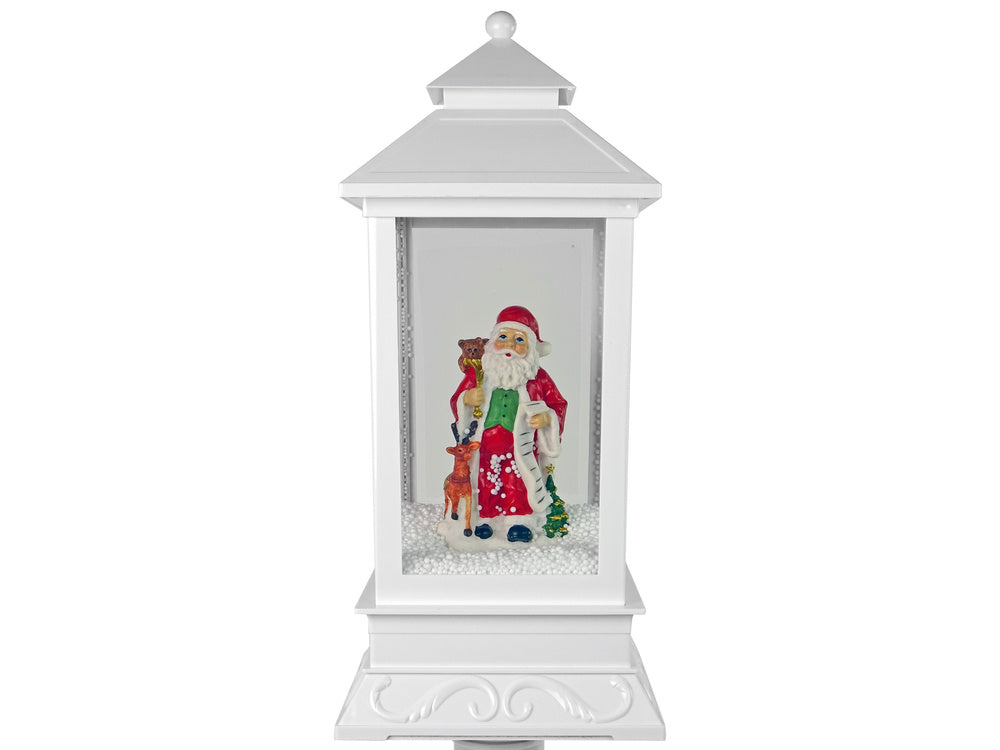 Žibintas yra gražaus dizaino ir raudonos spalvos, būdingos tam laikotarpiui. Pagaminta iš patvaraus plastiko, todėl yra lengva ir tvirta, kalėdinė dekoracija gali būti naudojama kiekvienais metais, todėl tai yra labai ekonomiškas pasirinkimas ir pirkinys, kuris tarnaus ilgus metus. Viduje esantis siurblys perneša sniegą nuo pagrindo ir purškia jį iš viršaus, todėl susidaro įspūdis, kad krenta sniegas.