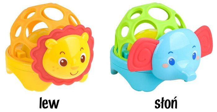 Minkštas gyvūnėlis patiems mažiausiems vaikams. Spalvingi safario gyvūnai. Gyvūno viduje yra kamuoliukas, kuris žaisdamas švyti ir skleidžia džiaugsmingą garsą. Žaislas turi lanksčią, ažūrinę struktūrą, minkštas ausis ir karčius. Žaislas lavina vaiko motorinę koordinaciją, skatina regos ir klausos pojūčius.