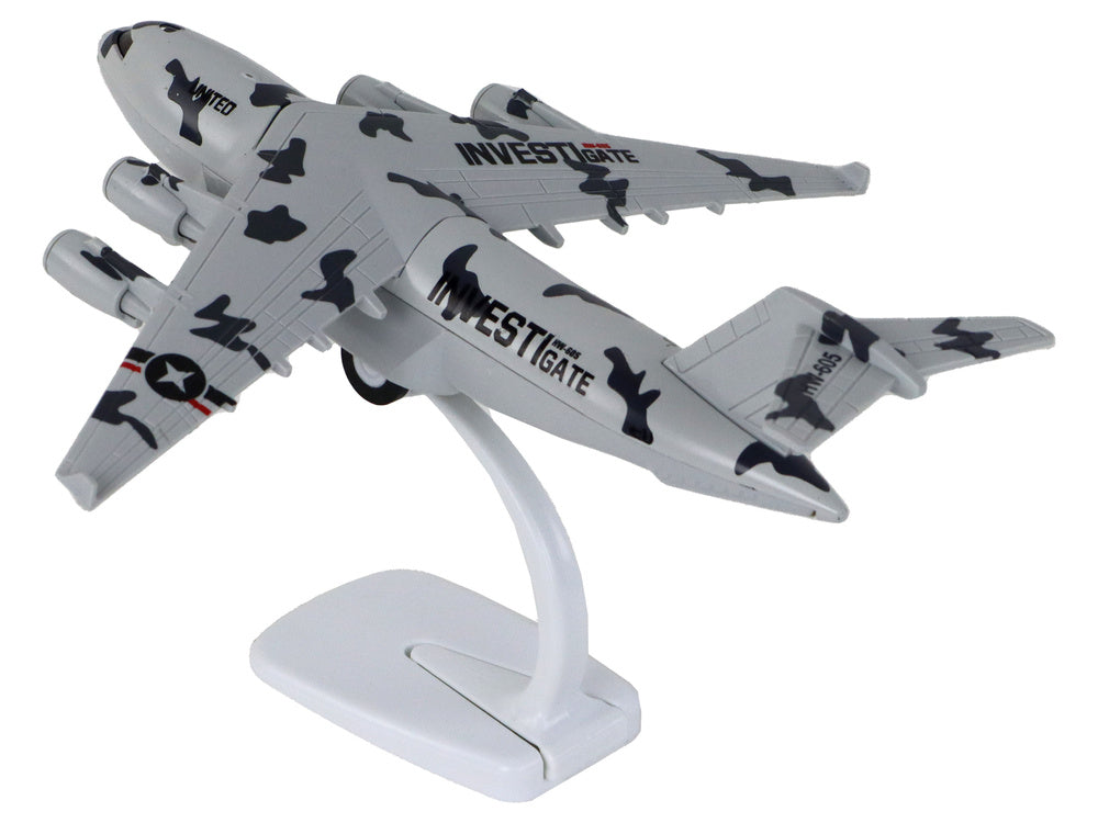 Šis įspūdingos išvaizdos karinio lėktuvo modelis. Jis nudažytas būdingu kamufliažo raštu, kuris suteikia jam karinį charakterį ir atrodo labai autentiškas. Spalvos ir raštas nurodo į karinį stilių, todėl žaislui suteikia tikro charakterio. Šis žaislas pasižymi interaktyviais garso ir šviesos efektais, kurie gerokai praturtina pramogą. Paspaudus priekinius lėktuvo ratus, salone užsidega šviesos, o iš paties lėktuvo sklindantys garsai primena didžiulio lėktuvo pakilimą. Lėktuvą galima laikyti dekoracija arba kolekcijos dalimi, o tai dar labiau pabrėžia jo vertę. Tai puiki dovana mažiesiems aviacijos ir karybos entuziastams, kurie įvertins šio žaislo autentiškumą ir kokybę.