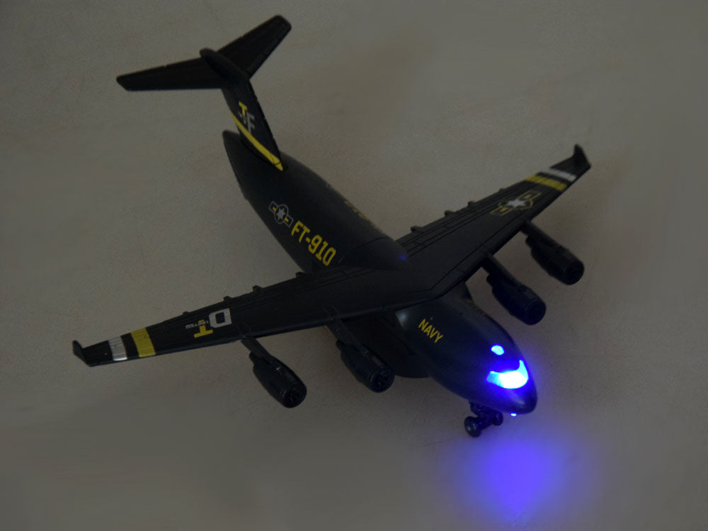 Karinio lektuvo modelis su šviesos ir garso efektais, juodas