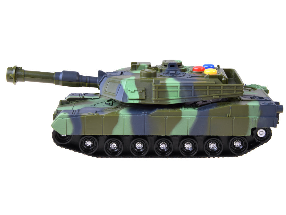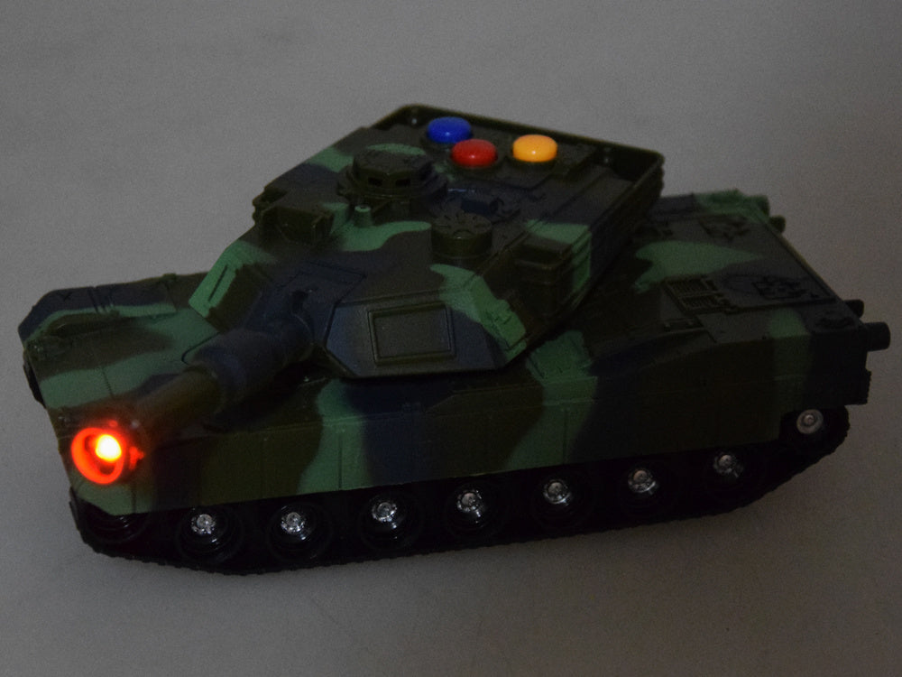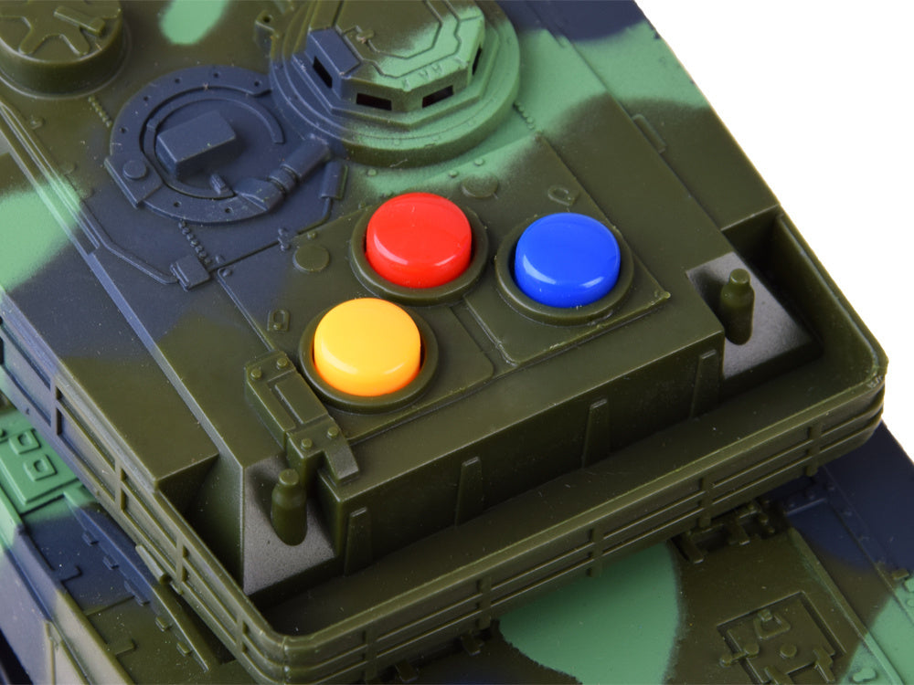 Karinis tankas su besisukančia patranka, šviesos ir garso efektais yra esminis bet kurio karinio dalinio elementas. Tankas pravers daugelio karo mūšių metu, todėl kiekvienas mažasis karinio stiliaus žaislų gerbėjas norės turėti tokią transporto priemonę savo mažoje armijoje. Su tokia įranga užtikrinama pergalė mūšyje.