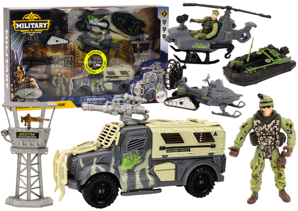 Karinis-kovinis rinkinys, kuris suteiks vaikams valandų valandas įdomių pramogų ir nukels juos į karinių nuotykių pasaulį! Kiekviena rinkinio detalė kruopščiai pagaminta su daugybe karinių detalių, todėl žaidimas tampa tikroviškesnis. Šis karinis-kovinis rinkinys yra puikus pasirinkimas jauniesiems kariuomenės entuziastams. Dėl detalių gausos ir elementų įvairovės kiekvienas žaidimas bus skirtingas ir kupinas įspūdžių.