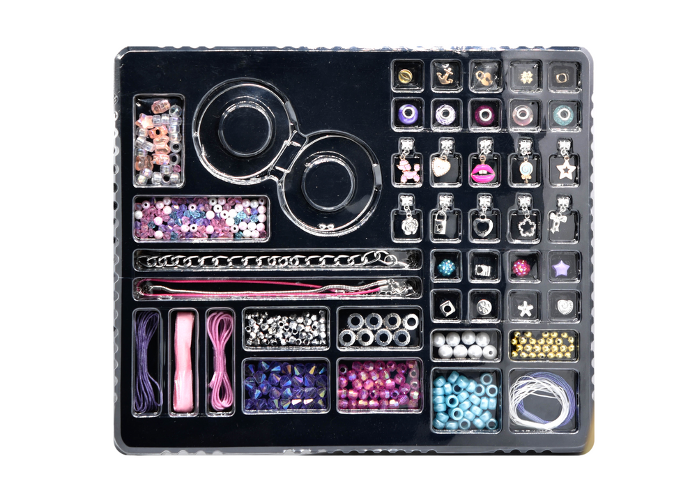 Šis fantastiškas rinkinys, skirtas unikaliems papuošalams kurti, sukurtas specialiai vaikams, norintiems išreikšti savo kūrybiškumą kuriant savo papuošalus. Pakuotėje yra bazinės apyrankės, kurios suteikia puikų pagrindą unikaliems projektams. Be to, rinkinyje yra įvairių pakabukų, įvairių formų ir dydžių spalvingų karoliukų ir virvelių, leidžiančių sujungti elementus į originalias kompozicijas.
