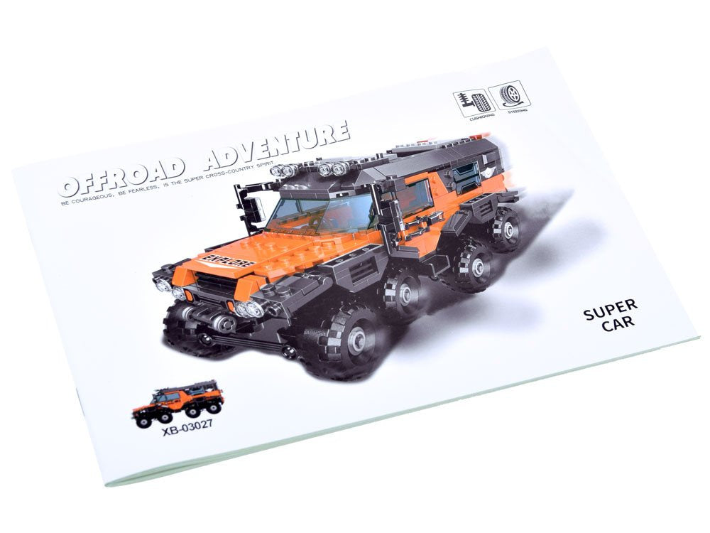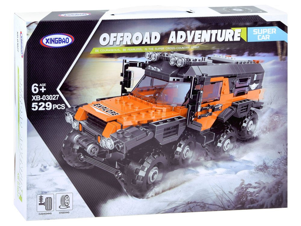 Super Car offroad Adventure - tai kaladėlių rinkinys, skirtas visureigiui sukonstruoti. Iš plytų galima sukonstruoti 8 ratų transporto priemonę, skirtą specialioms užduotims atlikti. Nuostabus dalykas yra tai, kad pastačius tokią transporto priemonę, automobilis turi judančių dalių.