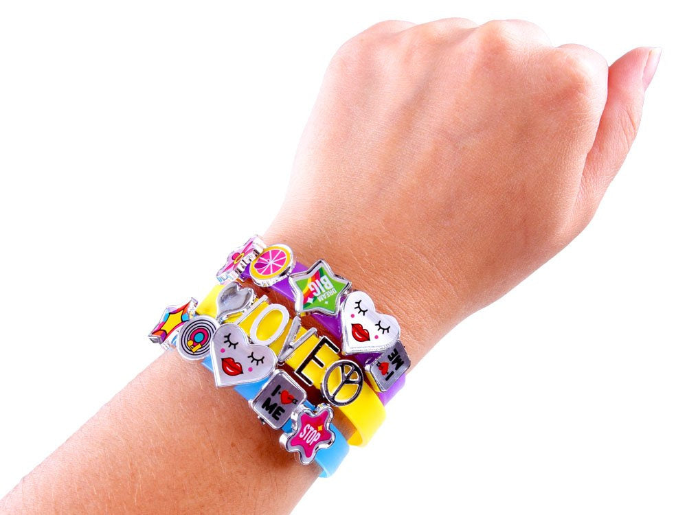 Kūrybinis rinkinys unikalioms apyrankėms sukurti. Tai kūrybinė pramoga, kupina išradingumo, kūrybiškumas skatina vaizduotę, kurios dėka galima sukurti nuostabius projektus. Tokio rinkinio pagalba galite sukurti savo mėgstamos spalvos rankų darbo apyrankes su vardais, pakabukais ar papuošimais. Tokie rankdarbiai – puiki dovanos idėja draugams ar šeimos nariams.
