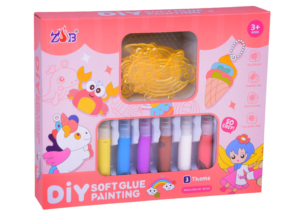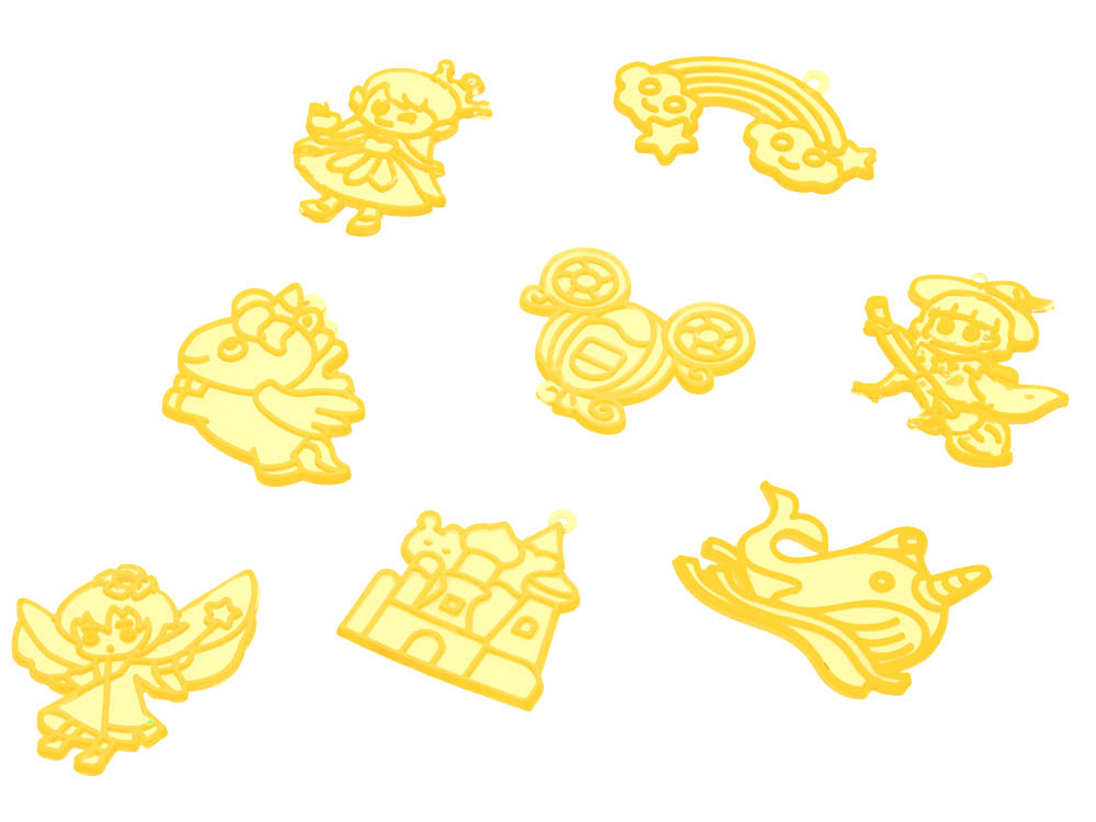 - 8 guminiai raštai: fėja, ragana, princesė, vaivorykštė, vienaragis, pilis, narvalas, vežimas