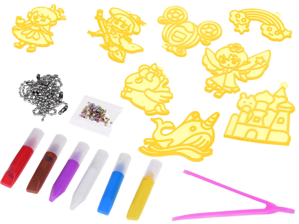 Sukurkite savo asmeninius pasakų raktų pakabukus su mūsų kūrybiniu rinkiniu mažiesiems dailininkams! Jis nukels jūsų vaiką į magijos pasaulį. Rinkinį sudaro 8 fantastiški guminiai raštai, vaizduojantys mėgstamus pasakų motyvus - nuo stebuklingų pilių, fėjų iki raganų ant šluotų. Kiekvienas iš šių raštų yra ne tik dekoracija, bet ir puikus laukas kūrybiniams žaidimams! Šis rinkinys yra ne tik puiki pramoga, bet ir puiki galimybė lavinti meninius įgūdžius, kantrybę ir tikslumą. Vaikai galės didžiuotis savo spalvingais, blizgančiais darbeliais, o visas kūrybos procesas jiems suteiks daug džiaugsmo ir pasitenkinimo!
