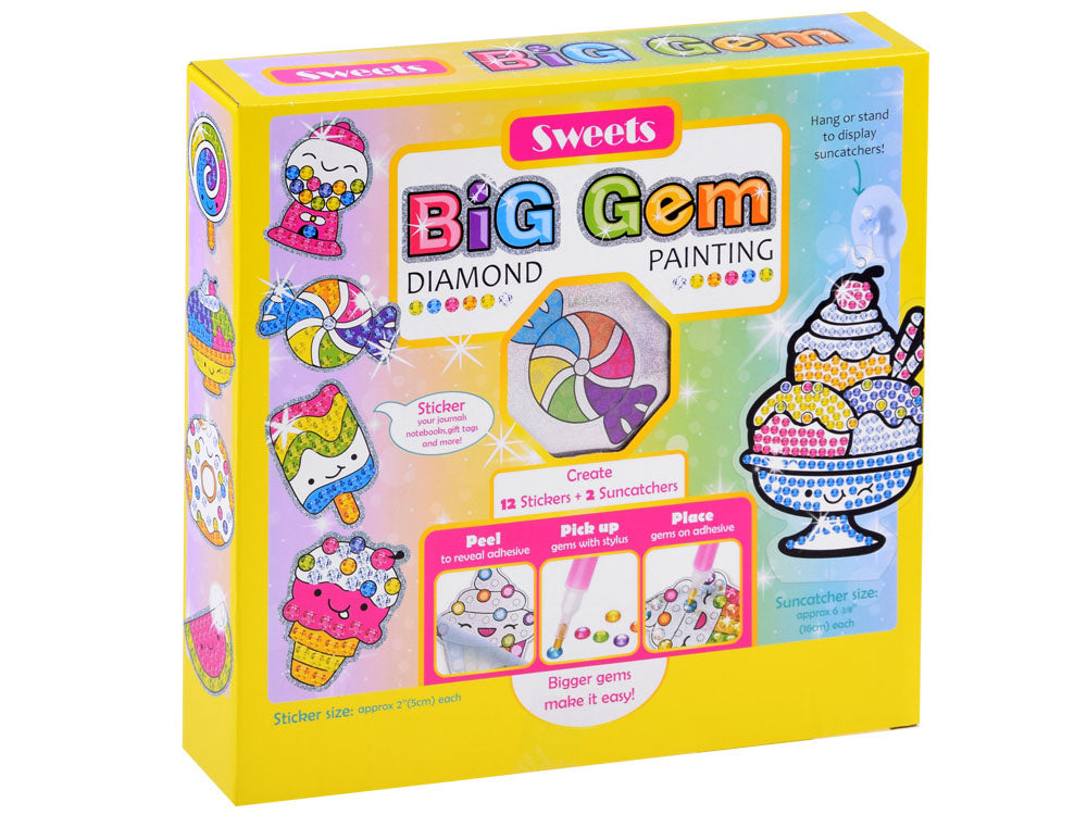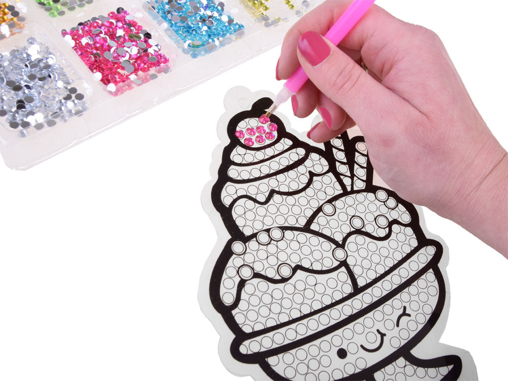 Deimantinis kūrybinis rinkinys SWEETS - madingiausia šio sezono kūrybinė pramoga vaikams. Rinkinyje galima kurti nuostabius raštus iš pasakiškai spalvotų deimantų. Smagiausia pasirinkti tinkamas deimantų spalvas ir specialiu rašikliu perkelti jas ant šablono su klijais. Sudėlioję elementus, gauname gražią spalvingą dekoraciją.