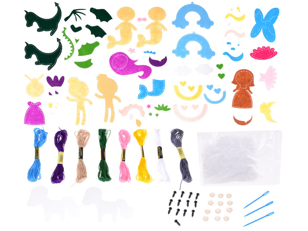 Kūrybinis rankų darbo rinkinys, kuriame galite išreikšti savo rankų darbo įgūdžius. Jame galėsite pasigaminti savo pasakų personažus. Siuvinėjimas teigiamai veikia koncentraciją, akies ir rankos koordinaciją ir rankų darbo įgūdžius. Tai taip pat puiki alternatyva sėdėjimui prie kompiuterio ar televizoriaus. Rankų darbo žaislai yra ne tik puiki dovana mylimam žmogui, bet ir graži vaiko kambario puošmena, kuria jūsų vaikas tikrai didžiuosis. Idealus rinkinys kiekvienam vaikui, kuriam patinka rankdarbiai ir meno kūriniai.