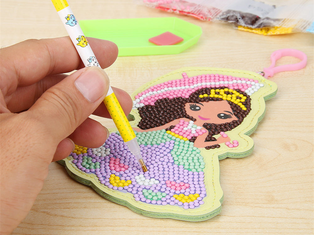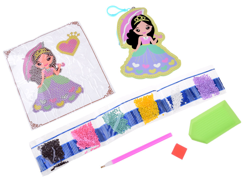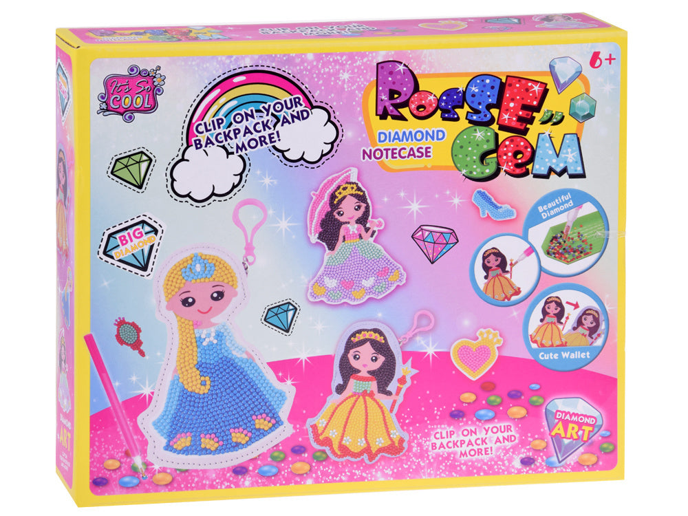 Deimantinio įklijavimo rinkinys leidžia sukurti gražią dekoraciją naudojant pasakiškai spalvingus deimantus. Žaidimo metu reikia parinkti tinkamų spalvų deimantus ir specialiu rašikliu perkelti juos ant šablono su klijais. Sutvarkę elementus, gauname gražų blizgantį lipduką, kuriuo galima papuošti raktų pakabuką. Spalvingą dekoraciją galima pritvirtinti prie kuprinės ir paslėpti raktus ar smulkias monetas. Deimantų klijavimas yra madingiausia kūrybinė pramoga vaikams. Mažyčių elementų tvarkymas yra labai įtraukiantis, taip pat lavina rankų ir akių koordinaciją, moko kantrybės ir skatina vaiko kūrybiškumą. Rinkinys supakuotas į gražią, linksmą ir spalvingą kartoninę dėžutę