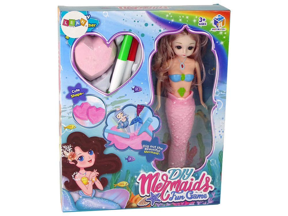 Kelių dalių undinėlės rinkinys, skatinantis vaiko kūrybiškumą ir vaizduotę. Žaiskite su savo mažąja undinėle, papuoškite jos uodegą ir atraskite, ką ji slepia širdelės formos akmenėliuose. Taip suderinsite kasinėjimo pramogą su meninių įgūdžių lavinimu.
