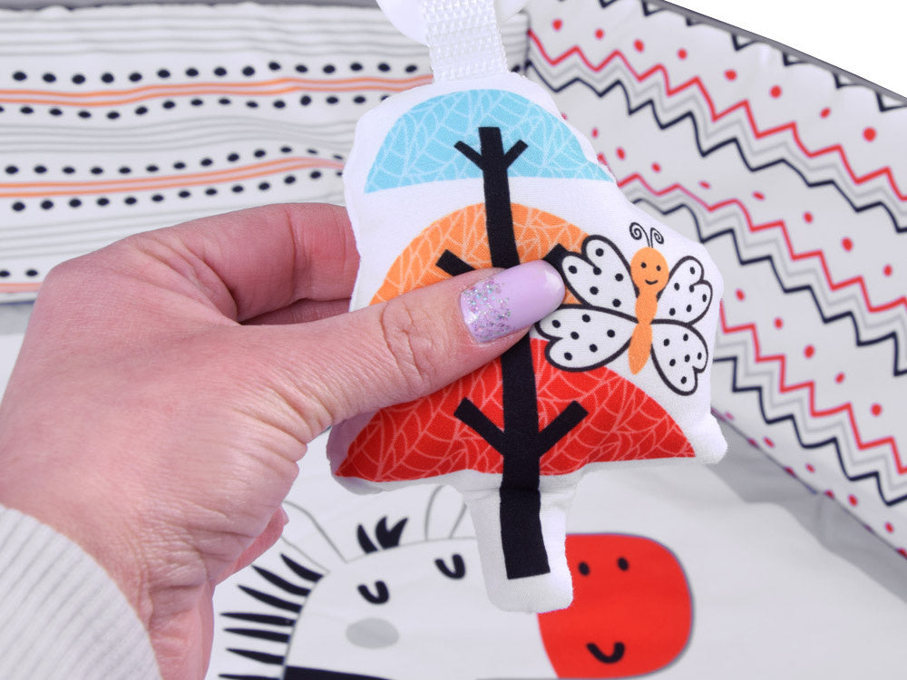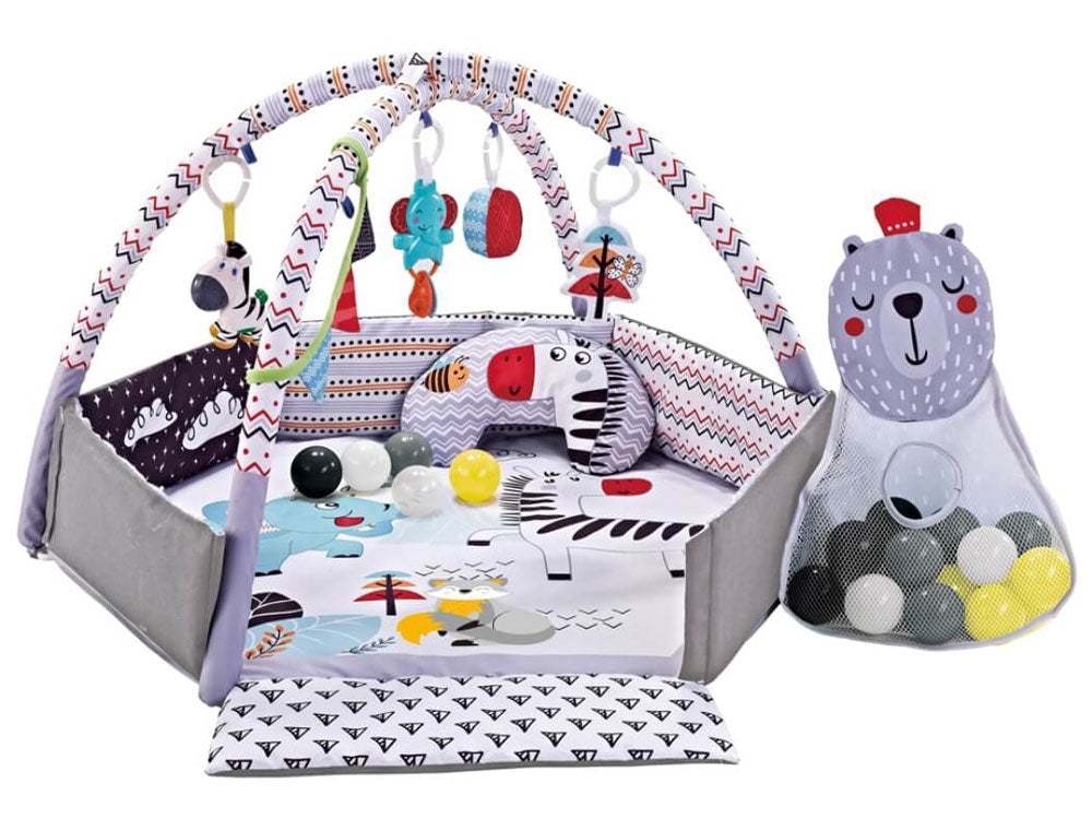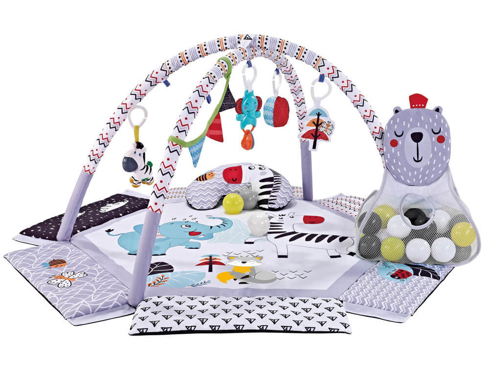 Kontrastingas, lavinamasis kilimėlis vaikui su daugybe priedų, skirtų stebėjimui ir linksmybėms, pravers nuo pirmųjų vaiko dienų. Kilimėlis sukonstruotas taip, kad augtų kartu su vaiko poreikiais. Iš pradžių jis bus ideali stebėjimo vieta, o laikui bėgant taps puikia žaidimų aikštele.