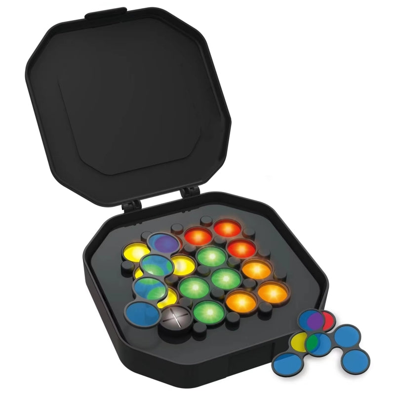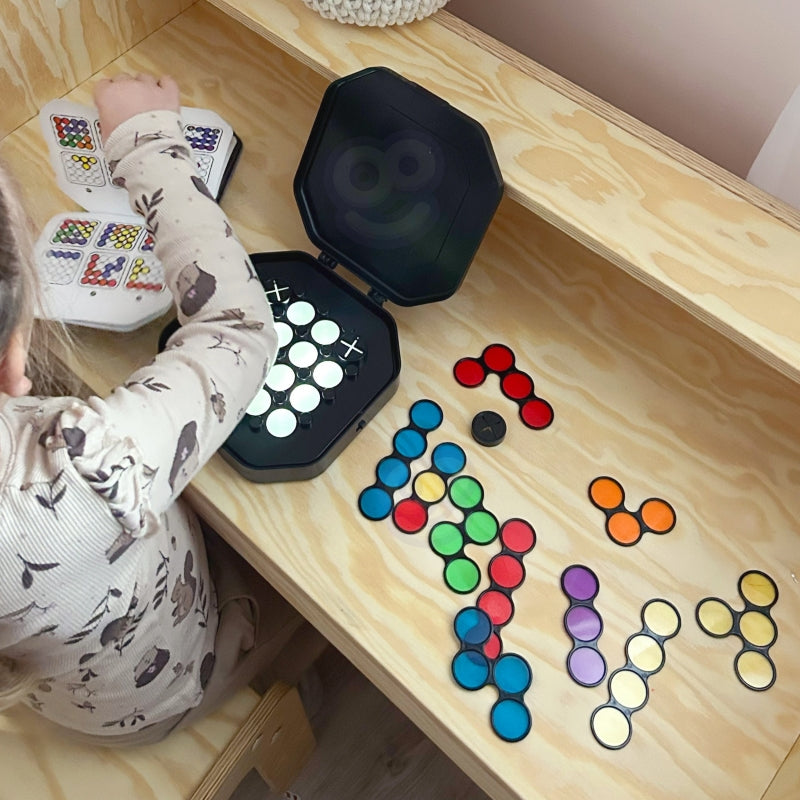 Pasirinkite pirmąją iššūkio kortelę, kurioje pavaizduotas ant lentos išdėliotinas raštas. Padėkite lentą ant stabilaus paviršiaus ir įjunkite apšvietimą. Jūsų užduotis - sudėlioti dėliones ant lentos taip, kad būtų atkurtas iššūkio raštas.