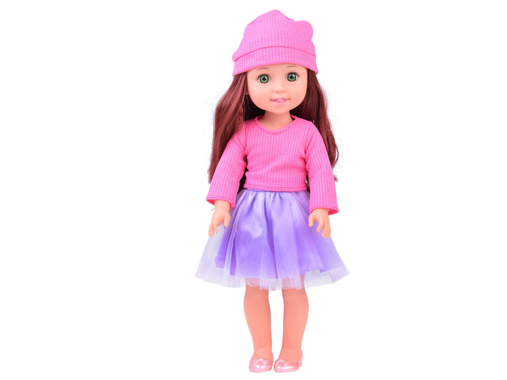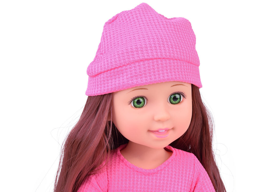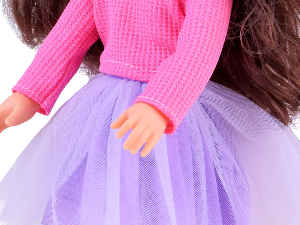 Žavinga lėlė kiekvienam vaikui suteiks daug teigiamų emocijų. 36 cm ūgio lėlė turi ilgus rudus banguotus plaukus su kurias galima daryti įvairias šukuosenas. Ji dėvi rausvą kepuraitę, rožinę palaidinę ir violetinį sijoną, o ant kojų - rožines basutes. Lėlė pagaminta tik iš plastiko, dėl to stabiliai sėdi.
