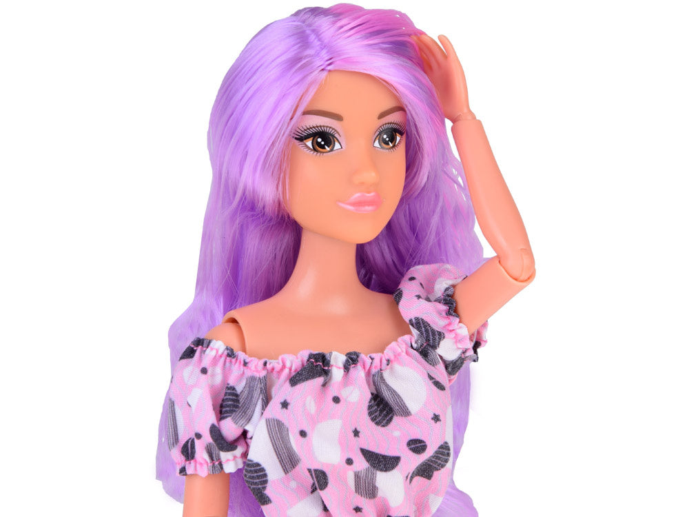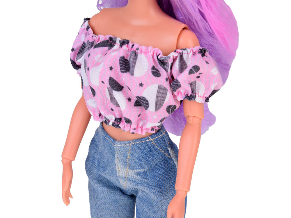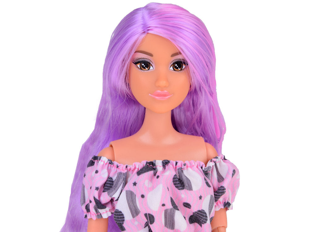 Anlily lėlė ilgais plaukais ir džinsais patiks bet kuriai mažai mergaitei. Lėlė turi gražius, ilgus, violetinės spalvos plaukus, kurie gražiai pabrėžia jos dideles rudas akis su makiažu. Lėlė aprengta rožine palaidine su juodais ir baltais raštais ir ilgais džinsais. Visam stiliui charakterio suteikia juodi bateliai su kulnu. Tokia lėlė yra tikros paauglės mergaitės atspindys. Kiekviena mergaitė, mėgstanti madą ir spalvingus raštus, apsidžiaugs turėdama ją savo kolekcijoje. Rinkinys supakuotas į labai gražią ir įspūdingą dėžutę, todėl puikiai tinka dovanoti.
