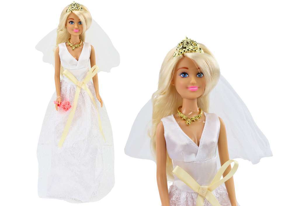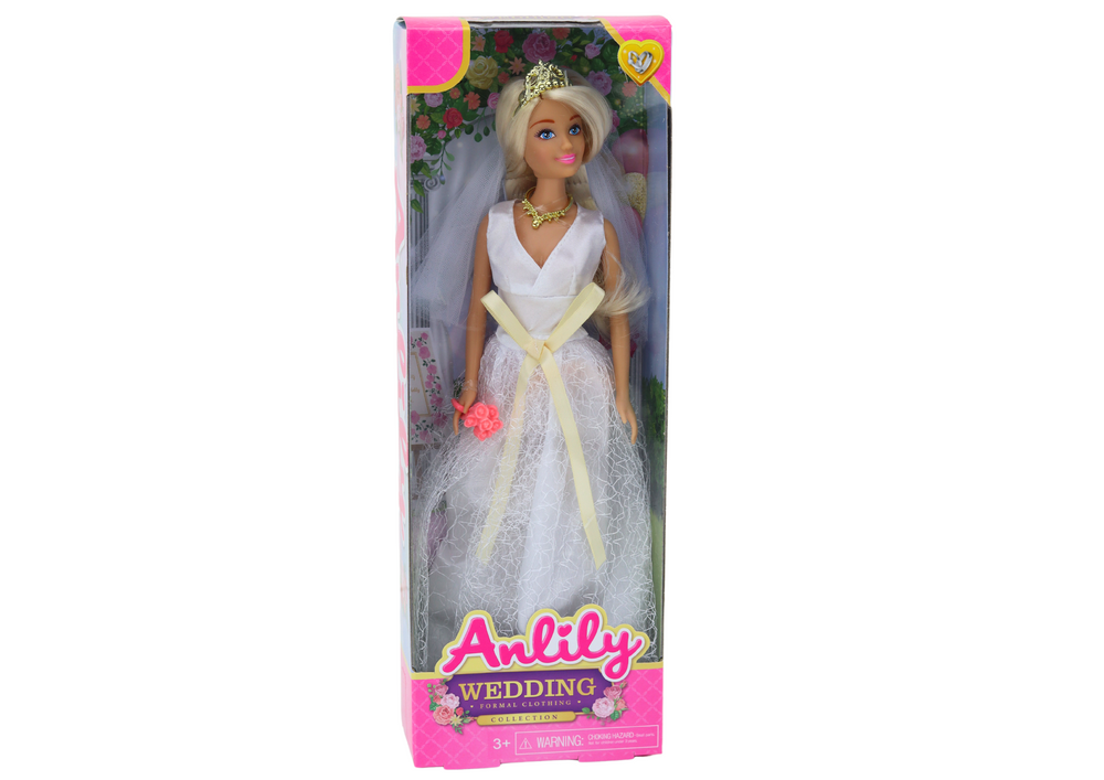 Anlily lėlė su vestuvine suknele yra unikalus žaislas, kuris traukia akį savo subtilumu ir kruopščiu meistriškumu. Jos vestuvinė suknelė išties įspūdinga - ilga, balta, su subtiliu smėlio spalvos lankeliu priekyje, suteikiančiu jai žavesio. Suknelės medžiaga švelniai apglėbia lėlę, pabrėždama jos eleganciją ir grakštumą.