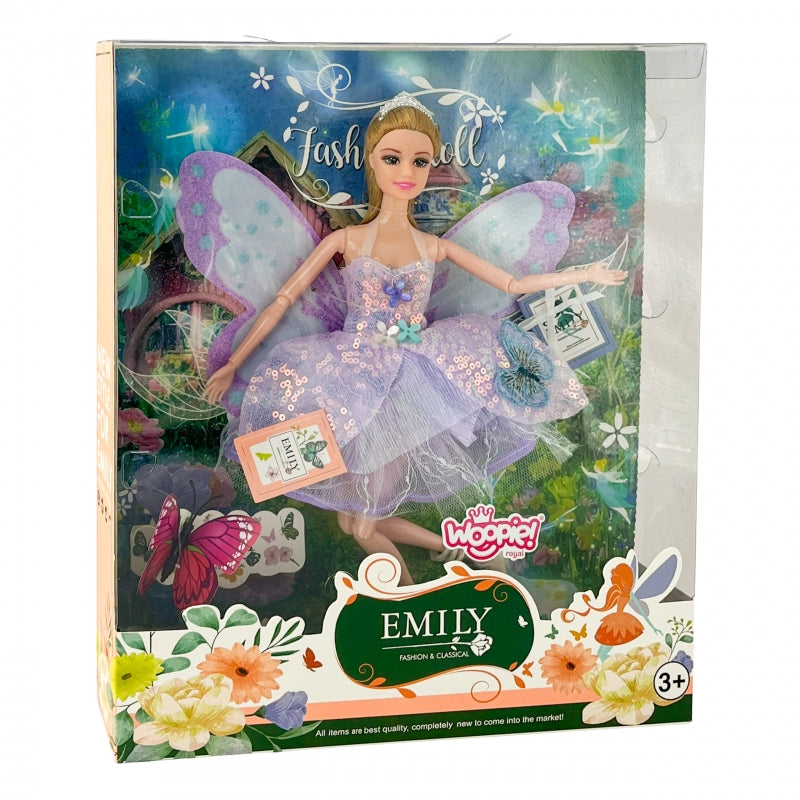Pasinerkite į magijos ir vaizduotės pasaulį su gražia Emi lėlė – drugelio fėja! Jos subtili violetinė suknelė su blizgiais papuošimais ir vaivorykštės spalvos sparnais pavers kiekvieną žaidimą stebuklingu nuotykiu. Dėl elegantiškos pakuotės ji taip pat puikiai tinka kaip gimtadienio ar Kalėdų dovana.