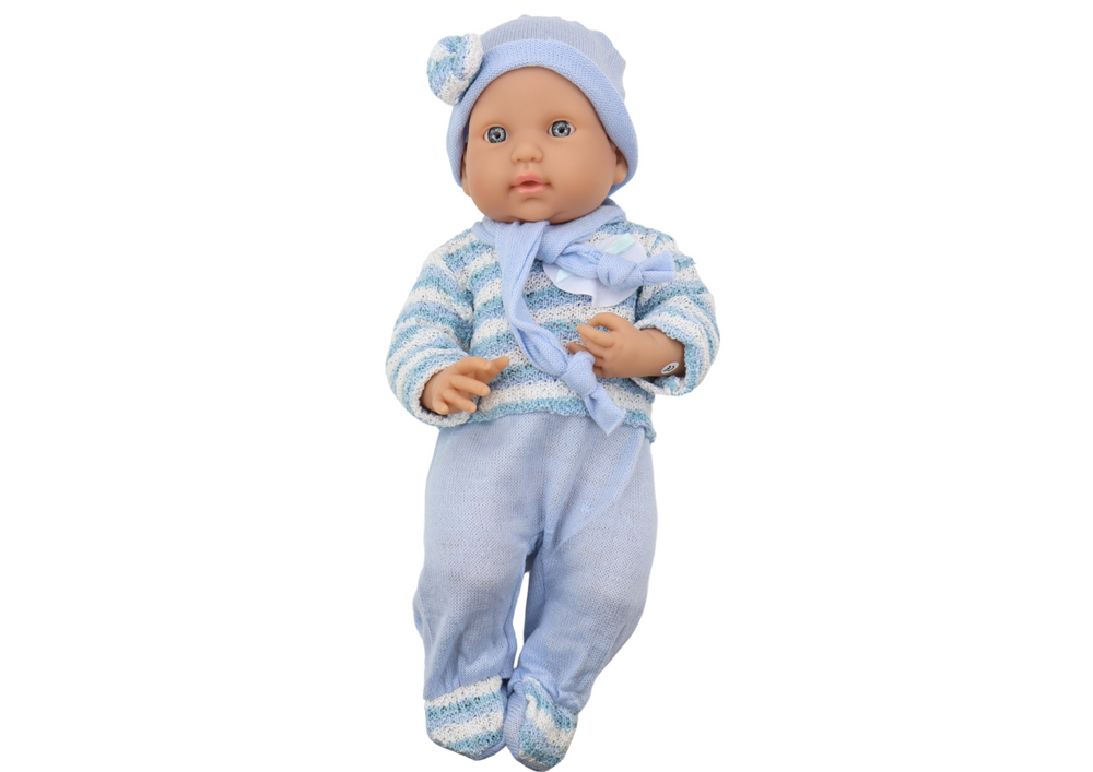 Lėlė kūdikis su mėlynais drabužiais ir priedais