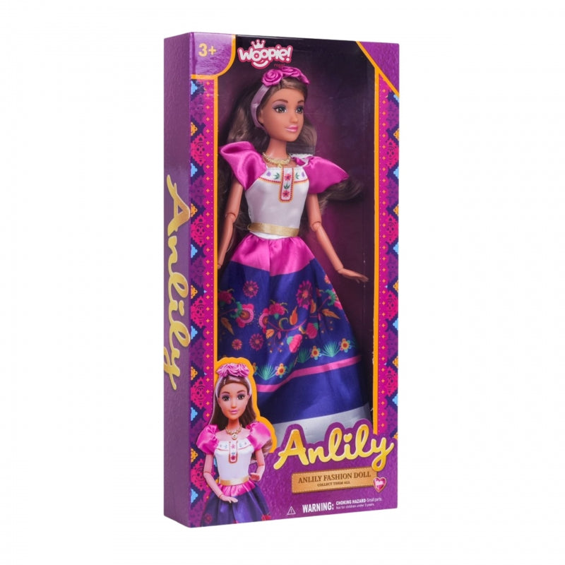Susipažinkite su žavinga Lily lėle, vilkinčia tradicinį meksikietišką kostiumą, kuri nuneš jūsų vaiką į kūrybingų žaidimų ir vaizduotės pasaulį! Lėlė turi gražius ilgus rudus plaukus, papuoštus rožine rožių juostele. Jos kostiumas džiugina turtingomis spalvomis ir raštais, primenančiais liaudies stilių.