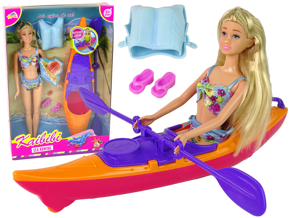 Viduje rasite nuostabią lėlę, pasiruošusią bet kokiai kelionei vandeniu. Jos mielas, spalvingas maudymosi kostiumėlis suteikia vasariškos nuotaikos, o šviesūs plaukai spindi saulėje. Pagrindinis rinkinio elementas - raudona baidarė, kuri tikrai patrauks dėmesį. Joje įrengti judantys elementai ir ratukai suteiks puikią patirtį atrandant naujas vietoves.