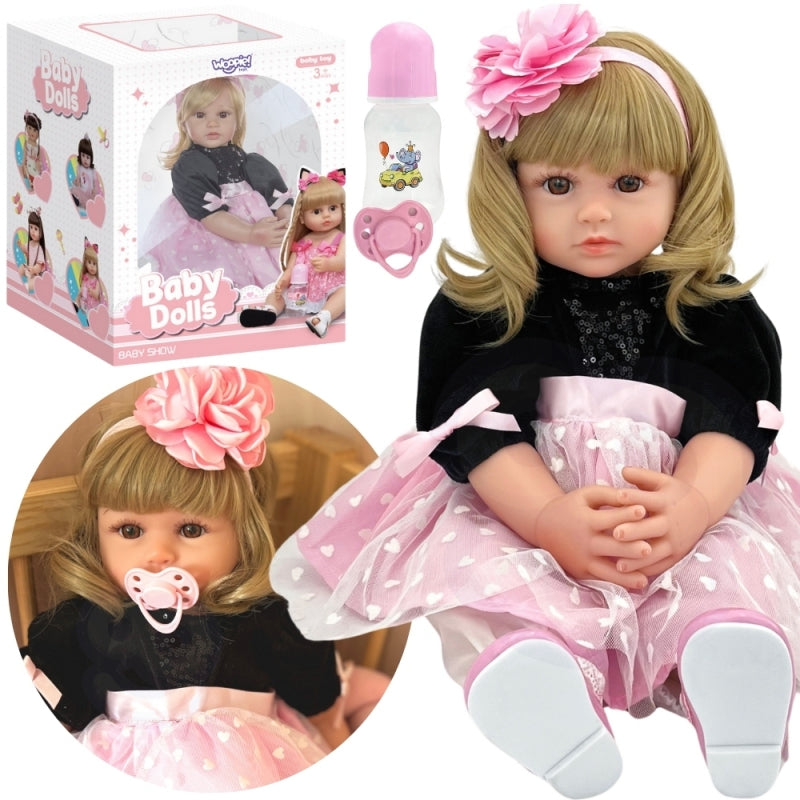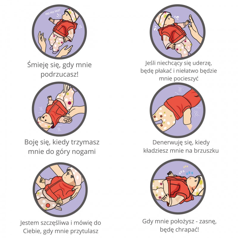 WOOPIE prekės ženklo lėlė yra kaip tikras kūdikis! aisdamas su lėle vaikas ugdosi empatijos ir atsakomybės jausmą! Lėlė yra minkšta liesti, o jos gražios mėlynos akys traukia vaiko dėmesį. Dėl puikios plaukų kokybės jūsų vaikas gali kurti įvairias šukuosenas. Lėlės rankos ištobulintos, tikroviškumo joms suteikia subtilūs nagai, o šiek tiek paraudę skruostai pabrėžia lėlės grožį. Mūsų lėlės , kad atrodytų kaip tikros. lėlė vilki rožinės ir juodos spalvos suknelę su mielais lankeliais.
