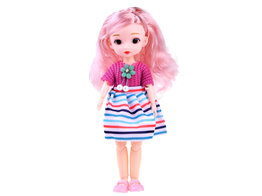 Žavinga lėlė, kuri tikrai patiks kiekvienai mažai mergaitei. Ši lėlė bus puiki žaidimų draugė ir paslapčių patikėtinė - ji tikrai niekam jų neišduos. Ją galite pasiimti pasivaikščioti, į darželį ar aplankyti močiutę. Lėlė aprengta gražia, spalvinga suknele ir rožiniais nuimamais bateliais. Jos mažą veidelį įrėmina ilgi, blizgantys plaukai, kuriuos galima šukuoti ir kurti įvairias šukuosenas. Lėlės rankos ir kojos yra judinamos sąnariais, todėl galite ją įstatyti į įvairias pozas, pavyzdžiui, sėdinčią, arba sulenkti jos rankas. Lėlė supakuota į permatomą celofaną.