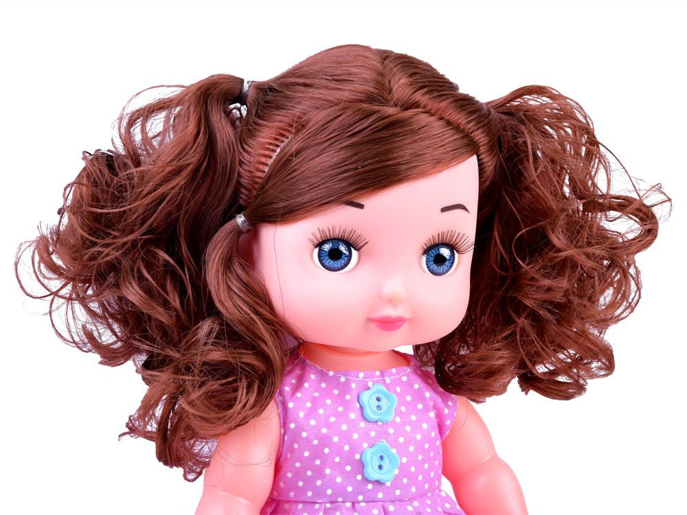 Žavinga lėlė bus puiki vaikų žaidimų palydovė ir tikrai suteiks daug džiaugsmo savo auklei. Miela lėlė turi ilgus, garbanotus plaukus, puikiai tinka šukuoti.