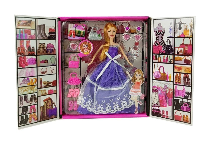 Žaislinė lėlė turi storus ir ilgus šviesios spalvos plaukus, o veidą puošia lengvas makiažas. Ji atrodo kaip princesė! Ji apsirengusi ilga baline suknele su violetiniais ir baltais nėriniais. Kupina elegancijos ir aksesuarų, ji gali eiti į prabangų pokylį ir sužavėti visus aplinkinius.